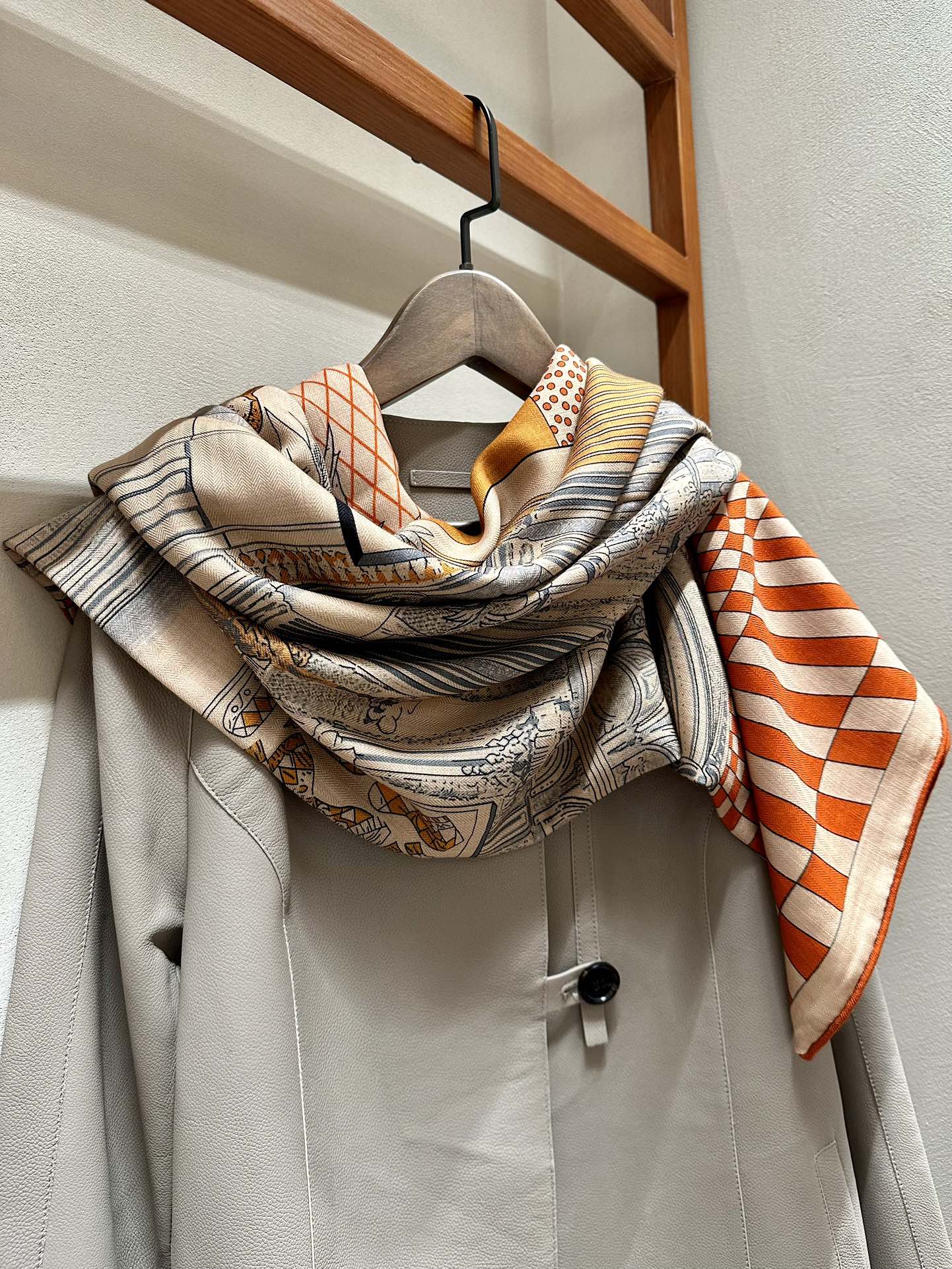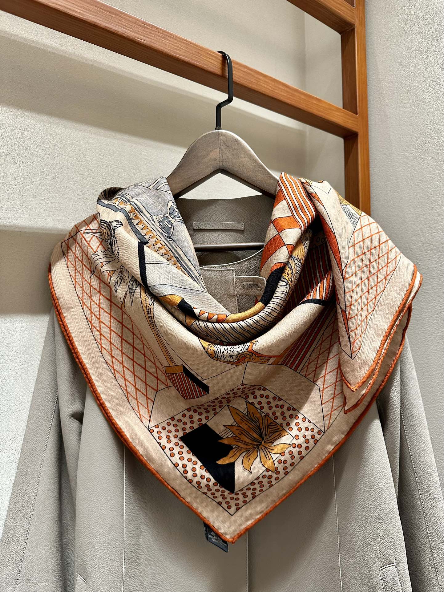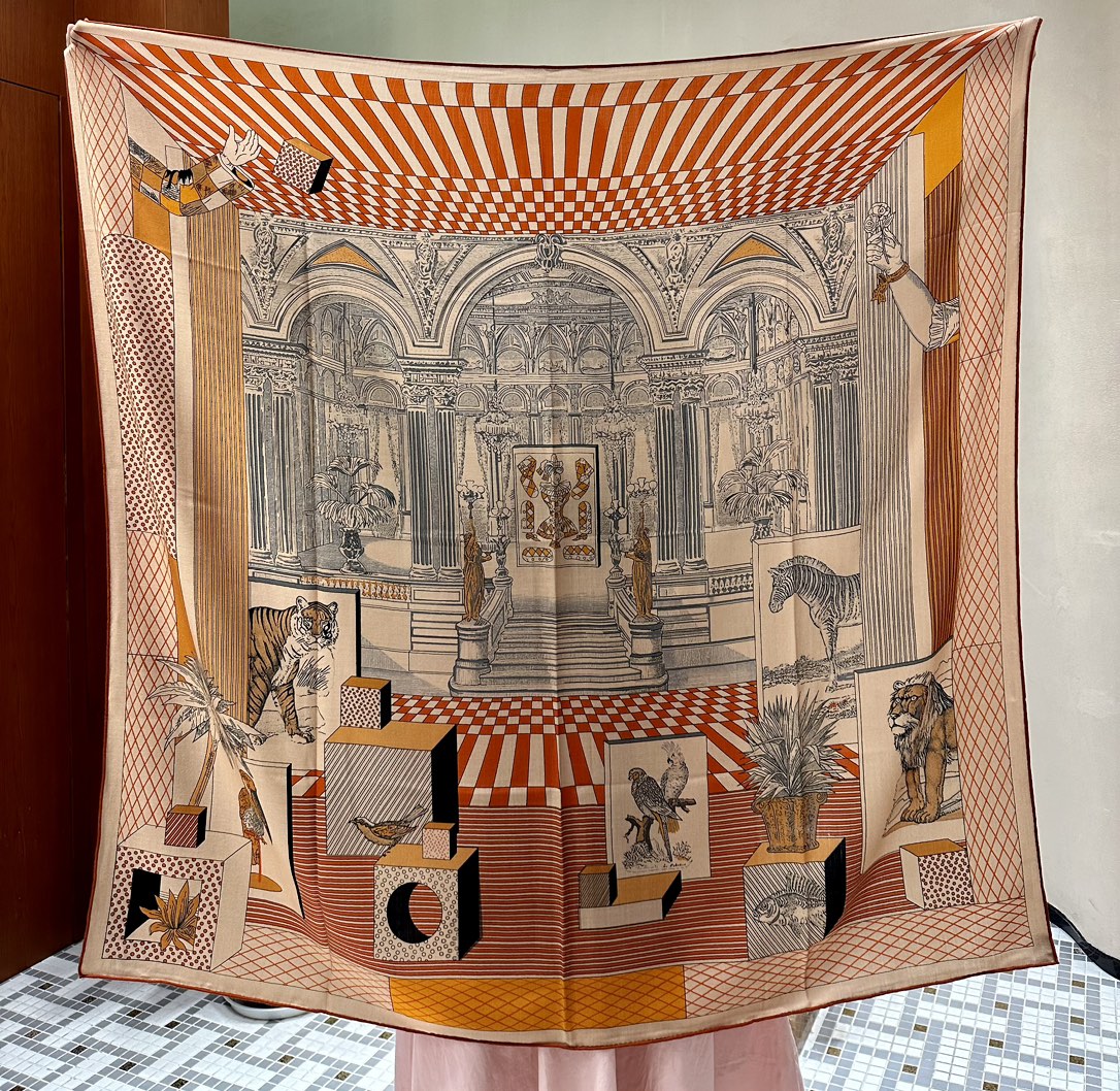 Grand Theatre Nouveau Scarf 140 CM In Orange Colorful Silk 385352