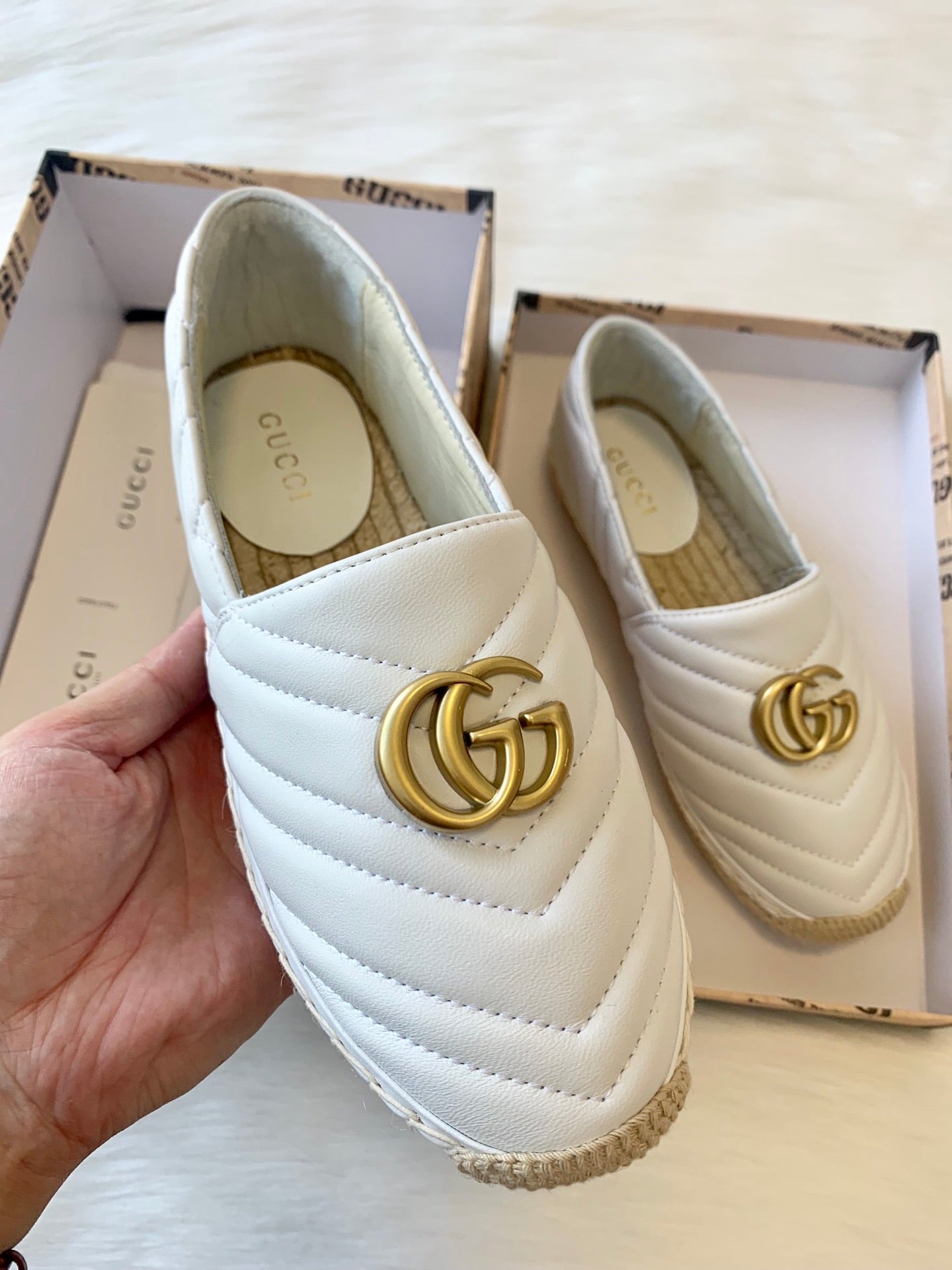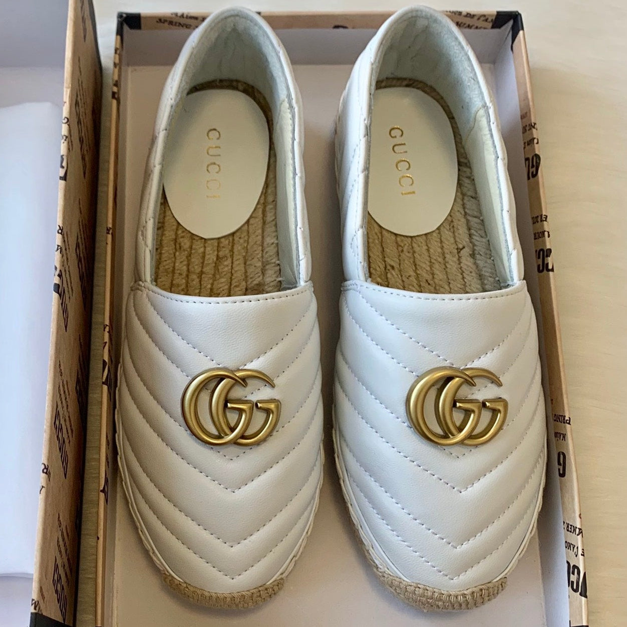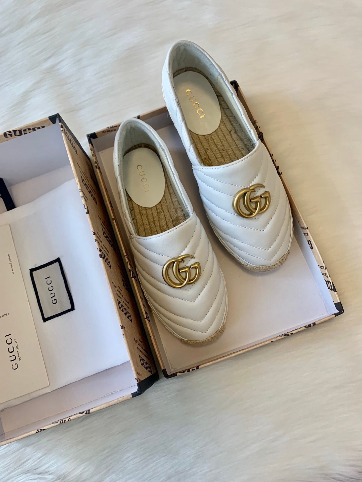 Gucci 2025 Espadrilles White Gold Lambskin 564662