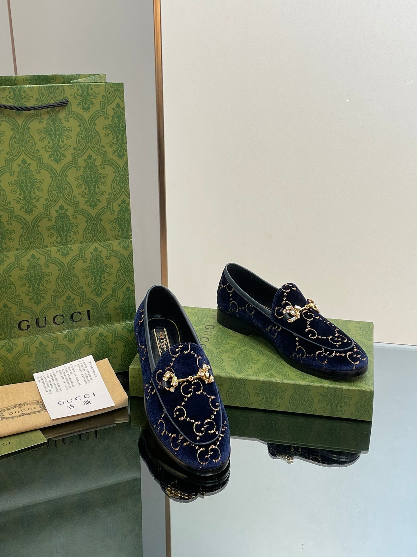 Gucci 2025 Jordaan GG Loafers Deep Blue Velvet