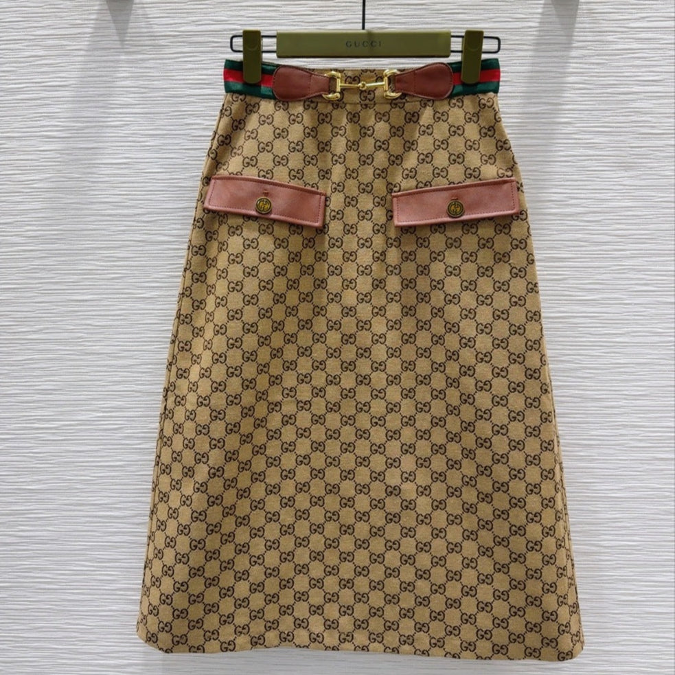 Gucci 2025 Long Skirt Camel and Ebony Polyester Fiber