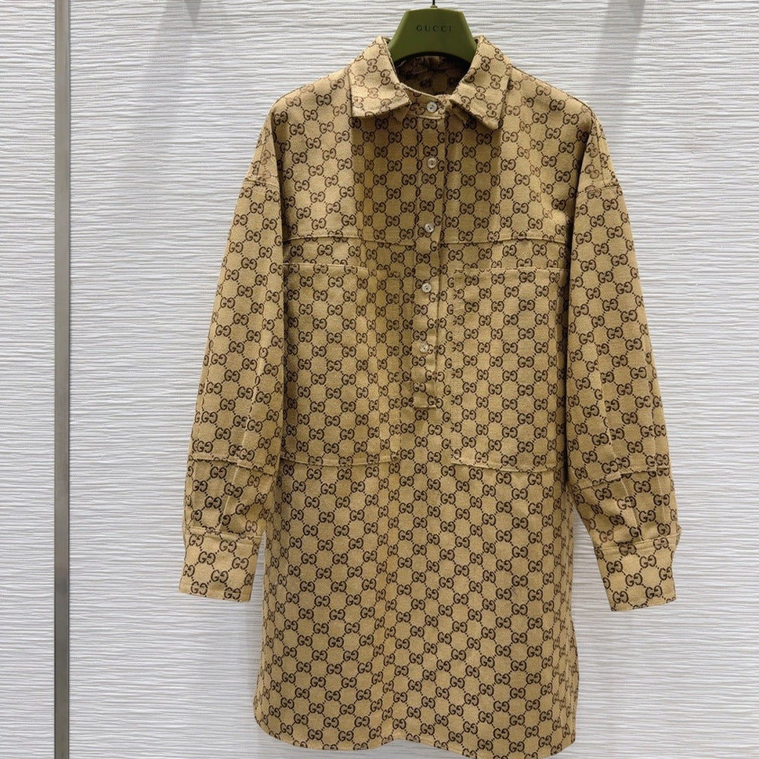 Gucci 2025 Shirt Camel and Ebony Polyester Fiber
