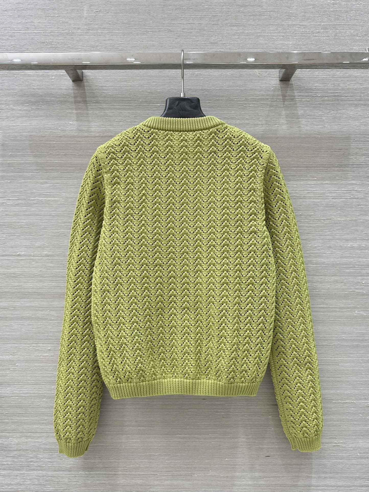 Gucci 25 Hollow Knitted Cardigan Avocado Green Polyester Fiber