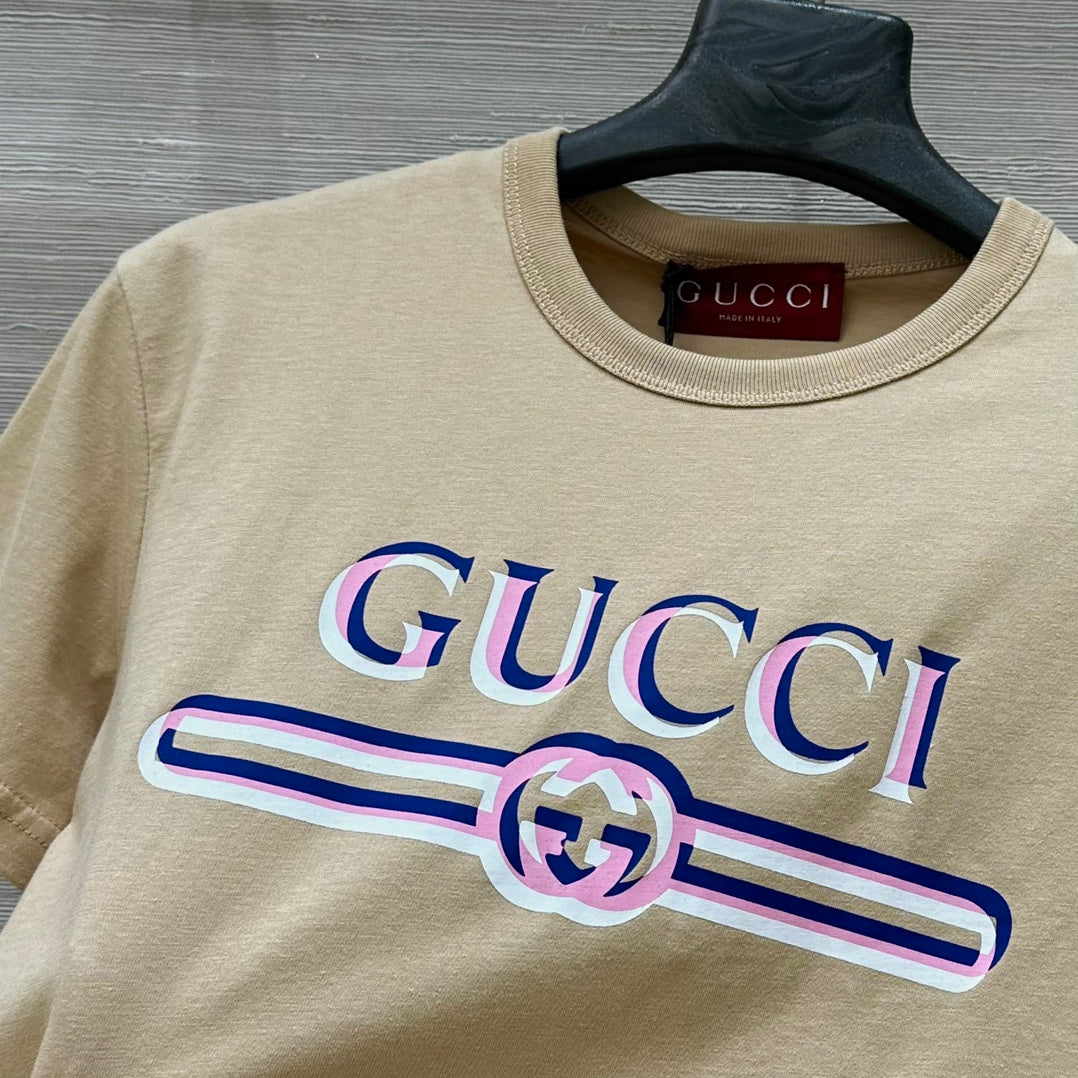 Gucci 25 Print Round Neck Short-sleeved T-shirt Light Camel Cotton