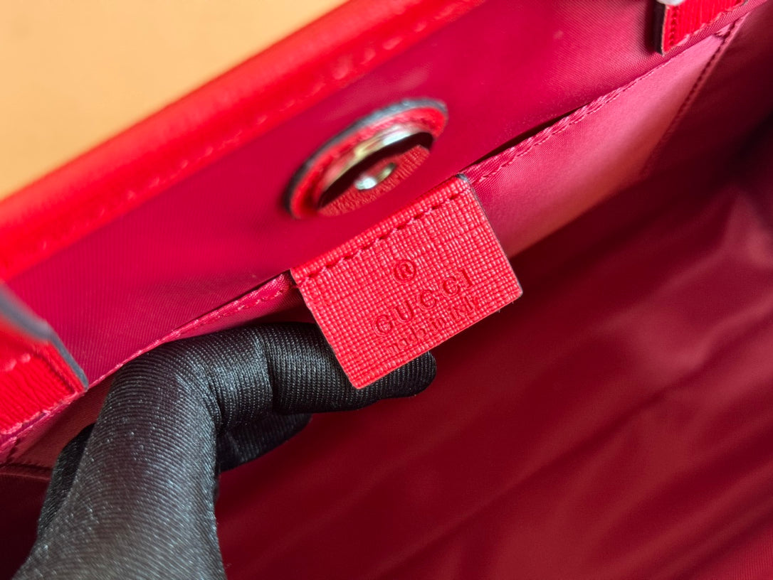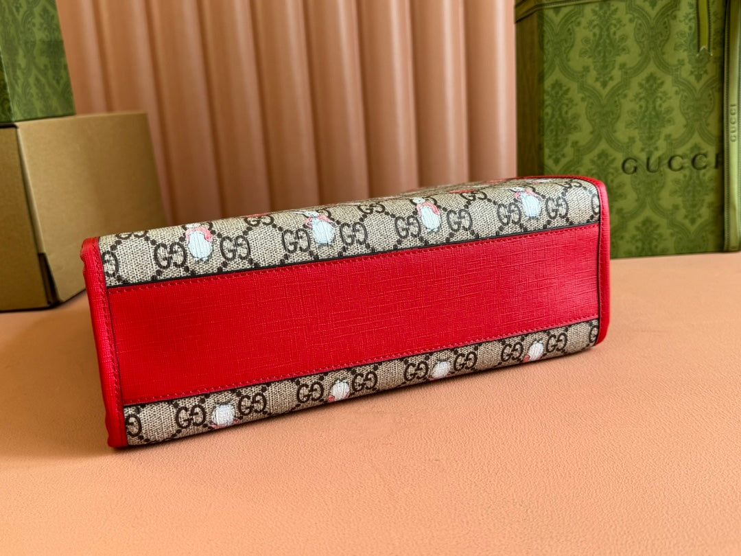 Gucci Bunny Print Tote Bag Red Beige Canvas 231228