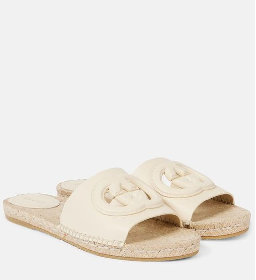 Gucci Cutout Espadrille Slides Ivory Leather