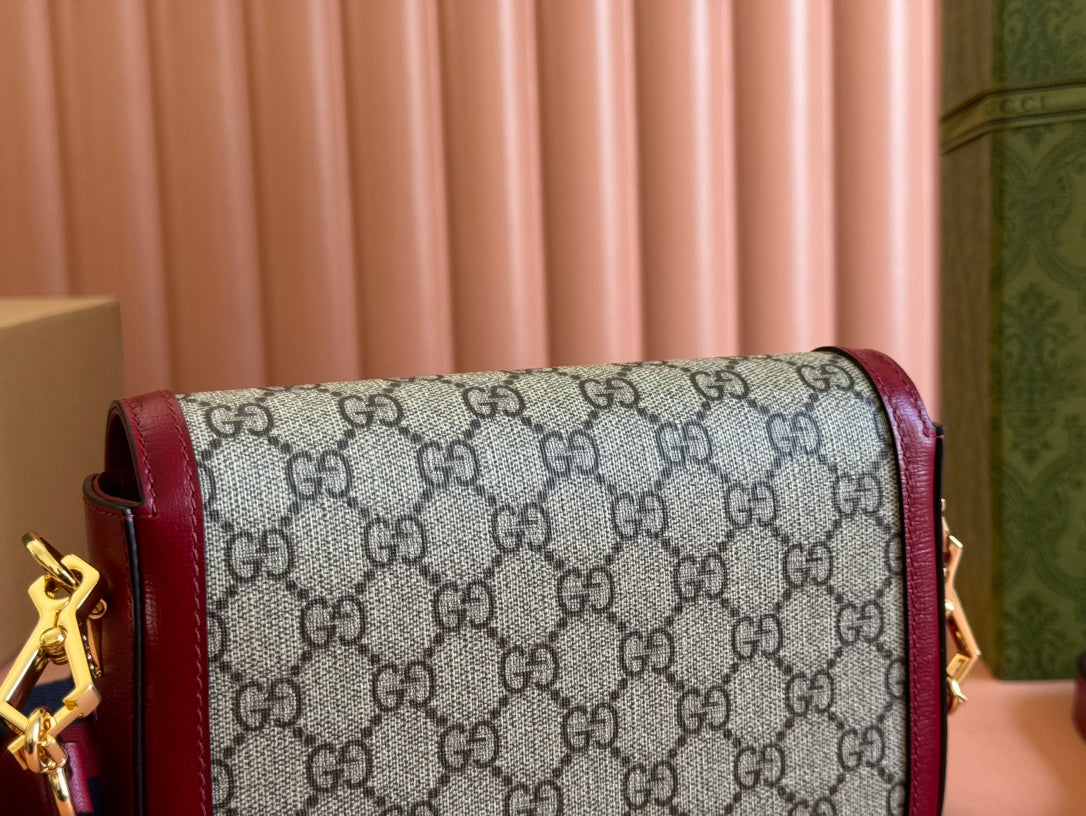 Gucci Horsebit Bag Ebony mix Rosso Ancora Red Leather Canvas 244259
