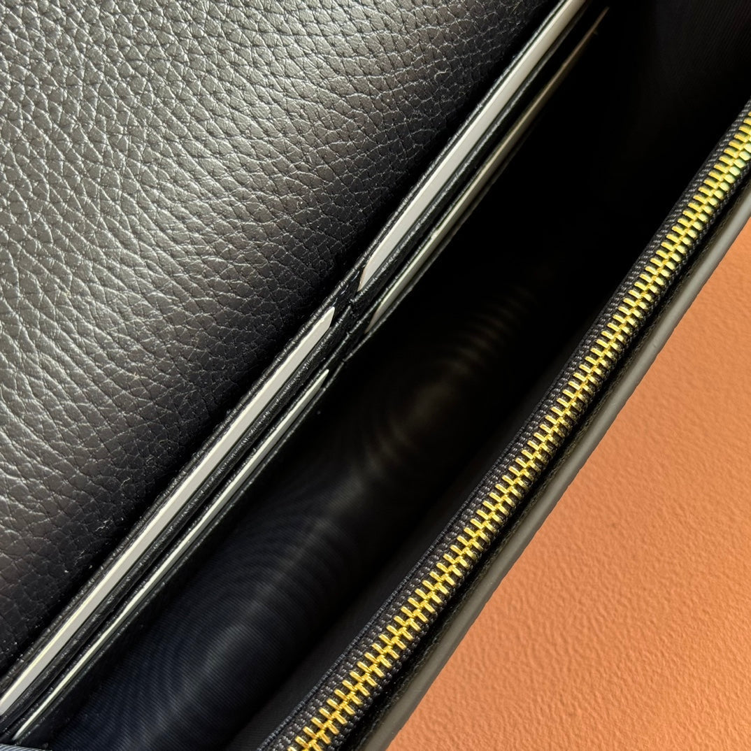 Gucci Marmont Chain Wallet Ebony Blue Black Leather Canvas 255317