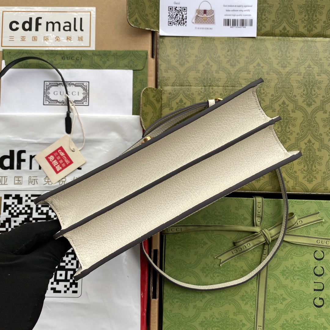Gucci Ophidia 25cm Bag Ebony White Canvas Leather 239794