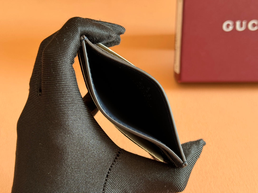 Gucci Ophidia Card Holder Wallet Black Ebony Canvas Leather 239962