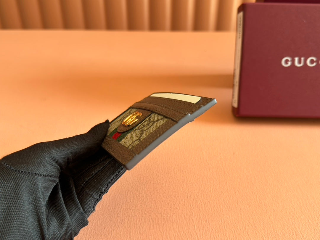 Gucci Ophidia Card Holder Wallet Brown Ebony Canvas Leather 239965
