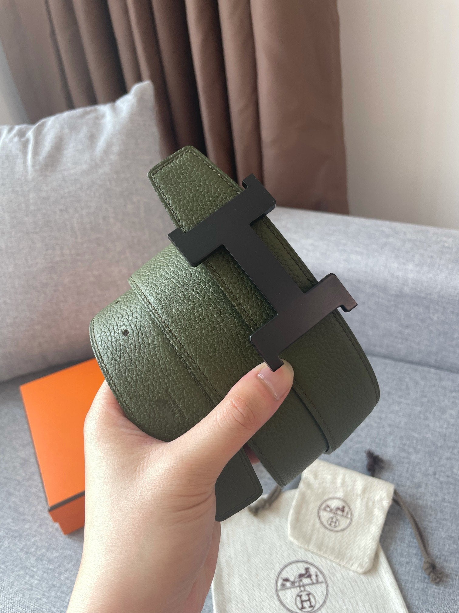 • H Buckle in permabrass plated metal.