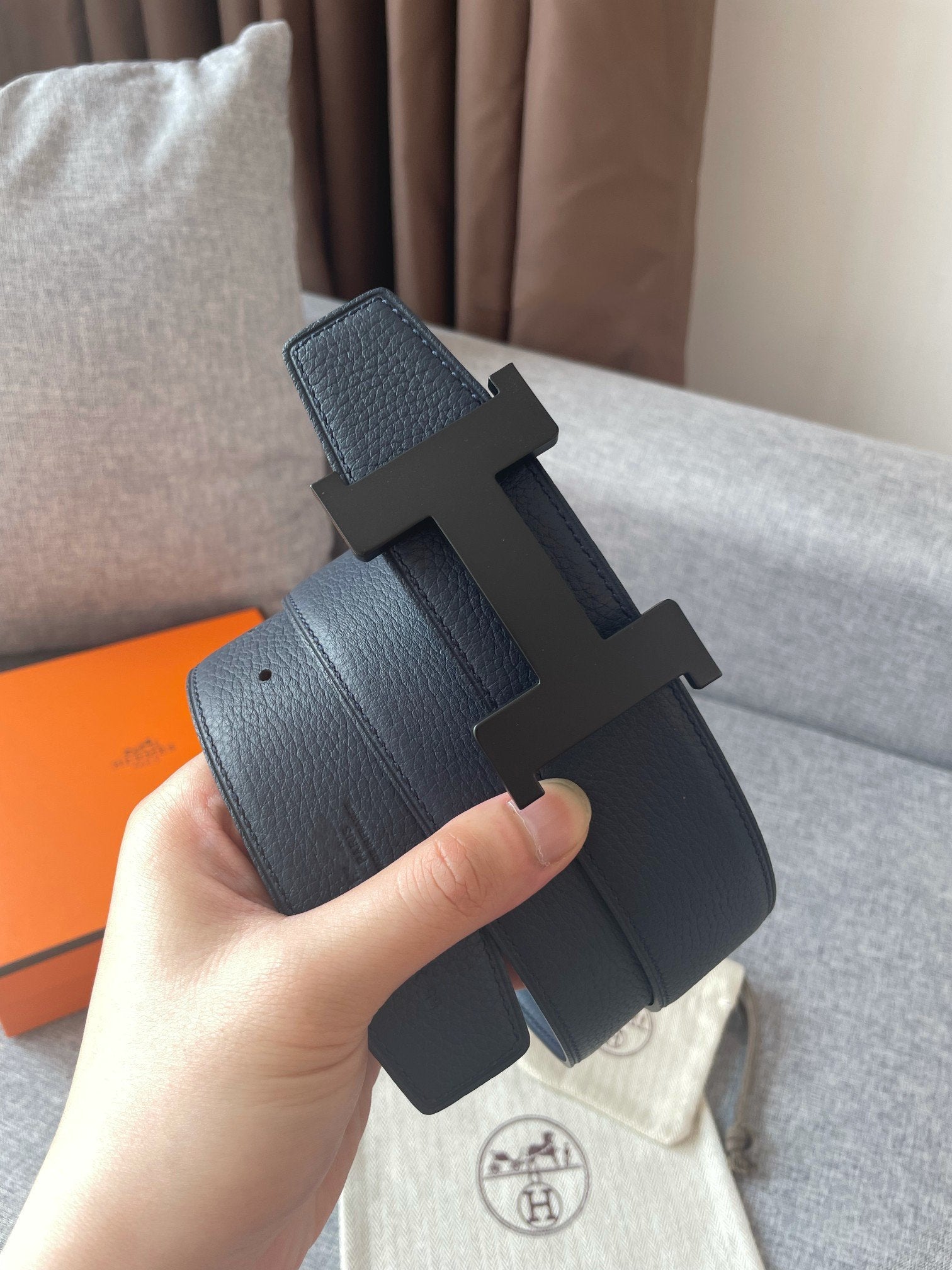 H CONSTANCE REVERSIBLE BELT 38MM BLACK BUCKLE NAVY BLUE LEATHER