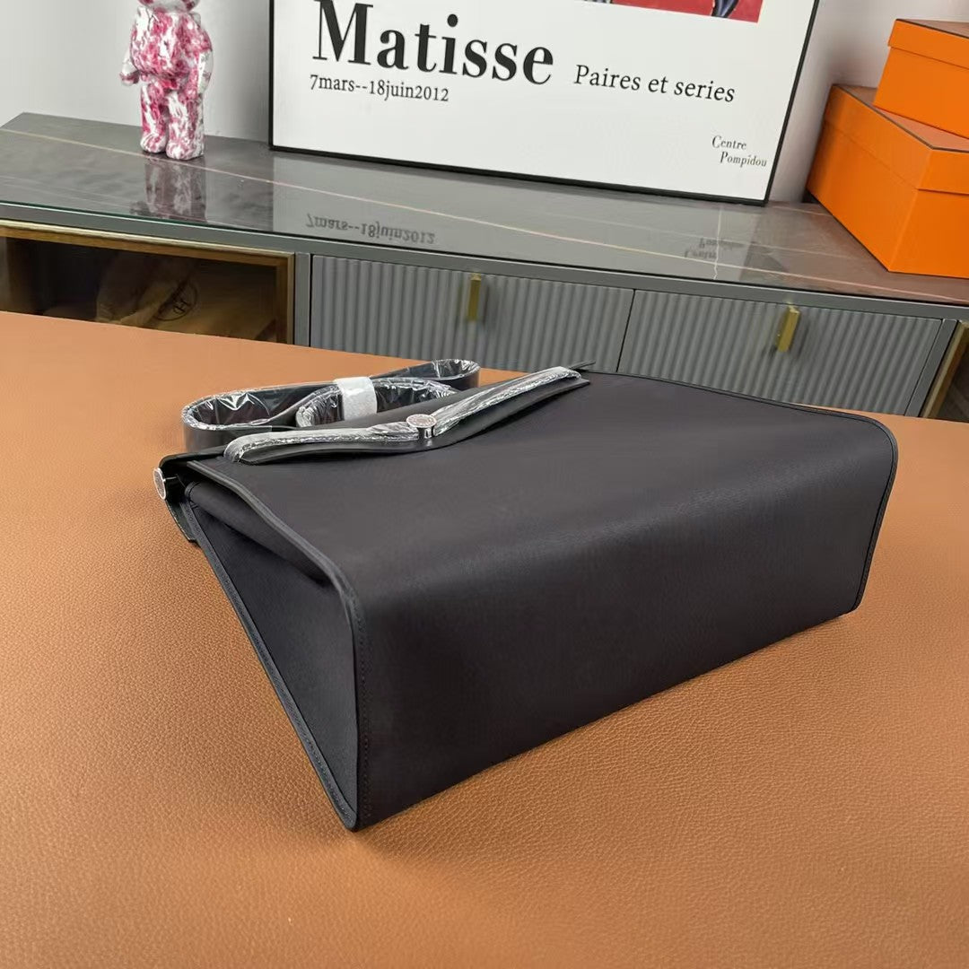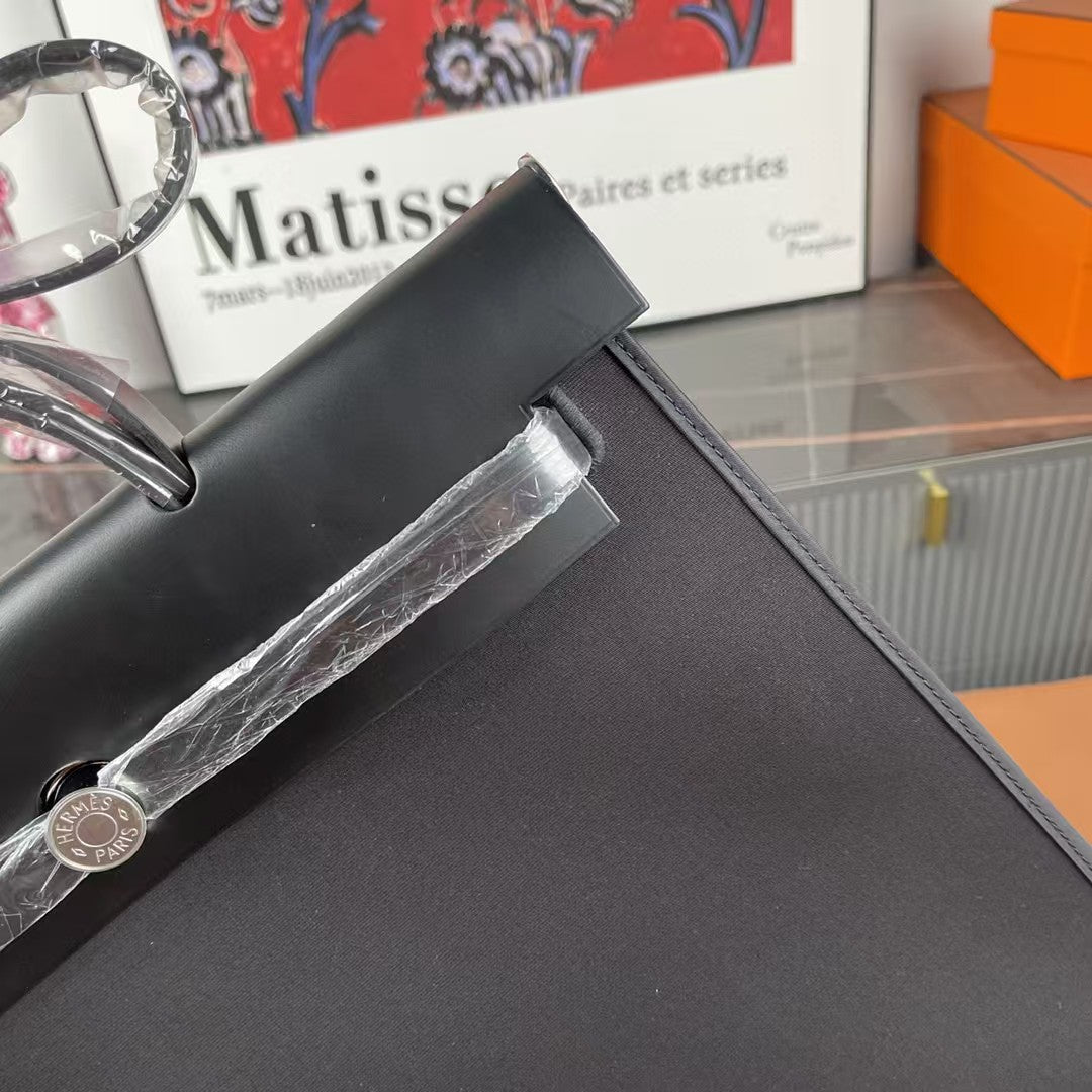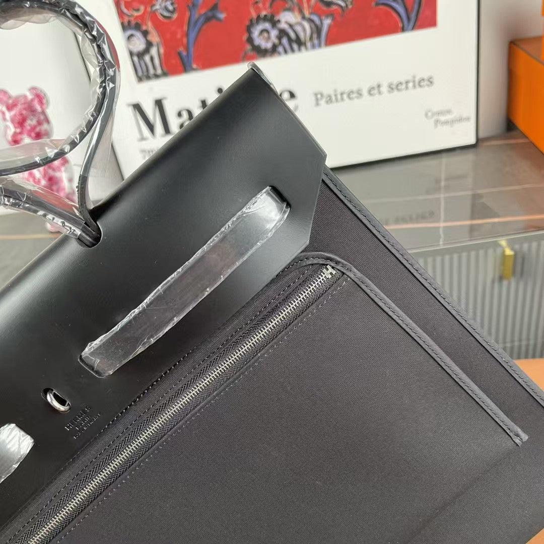 Herbag 39 Toile Black Canvas Black Cowhide Leather
