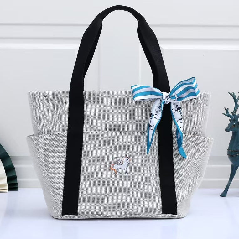 Hermes 2025 Cabriole Nappy Bag Light Gray mix Black Cotton
