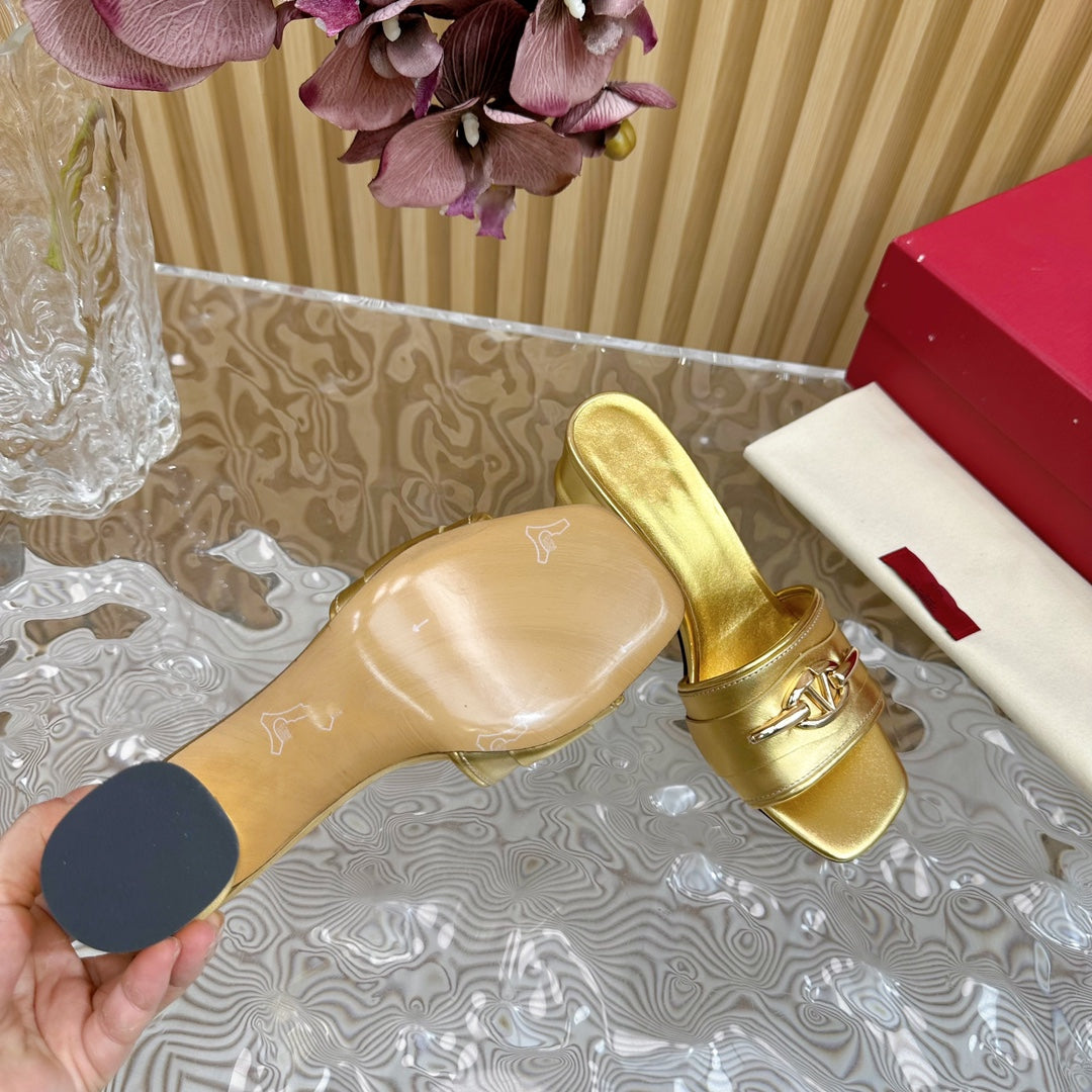 High Heel 70 Mule Sandal The Bold Edition Vlogo Square Toe Gold