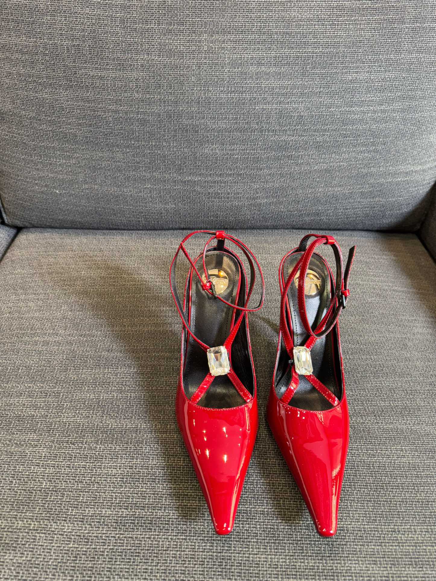 HIGH SANDAL ATTACHED GEM IN RED GLOSSY CALFSKIN