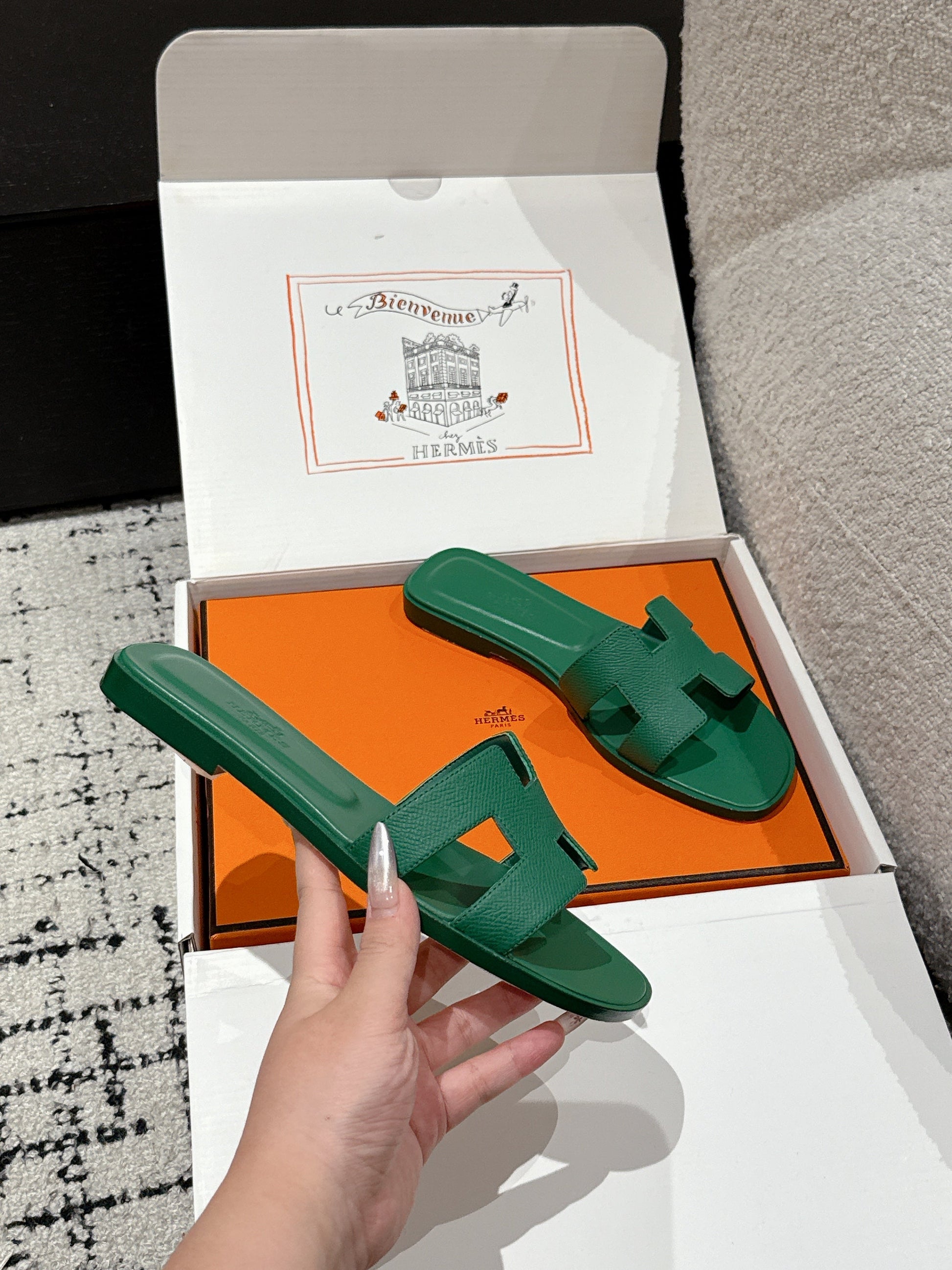 HM 25 Oran Sandal Dark Green Epsom