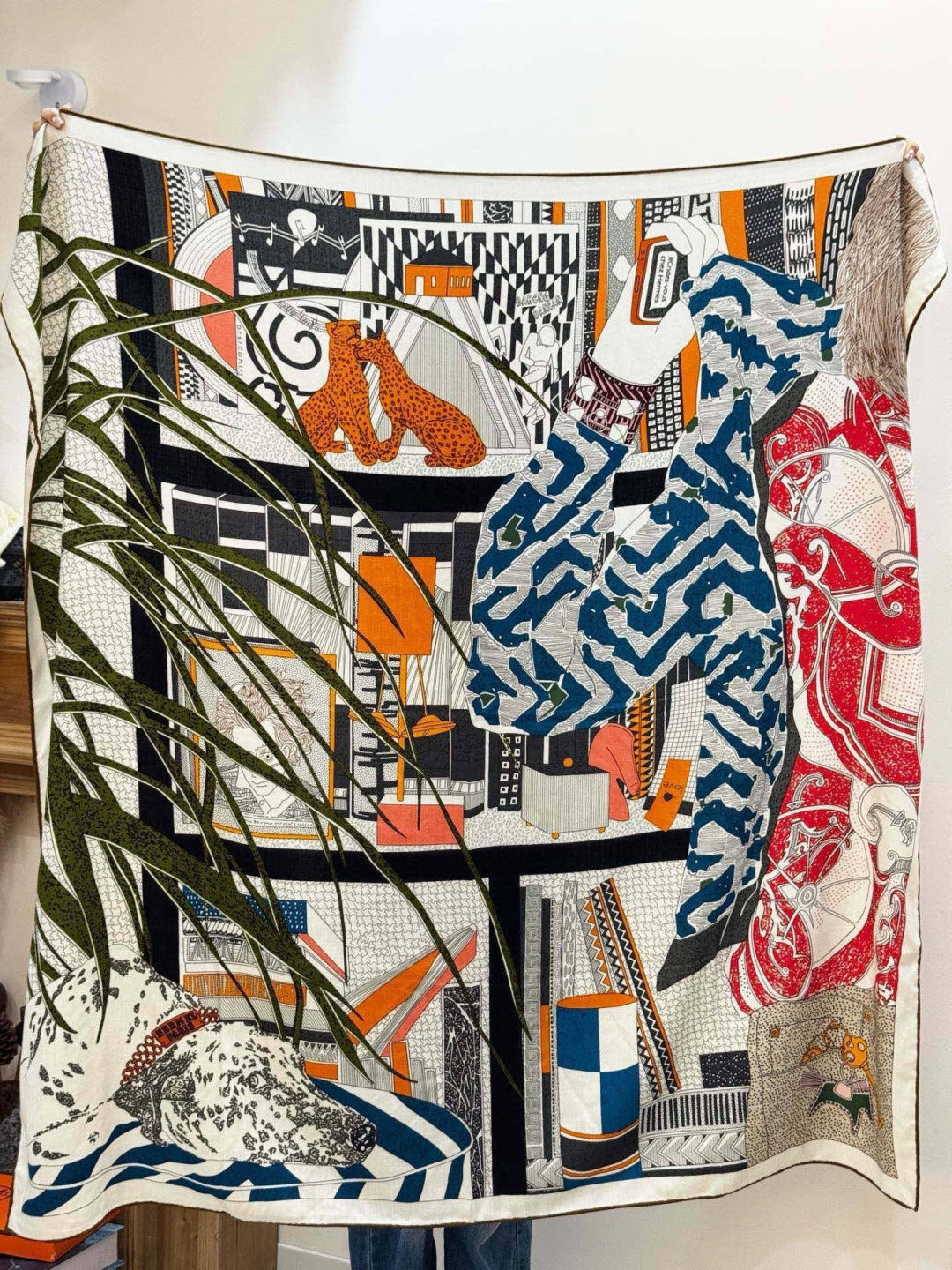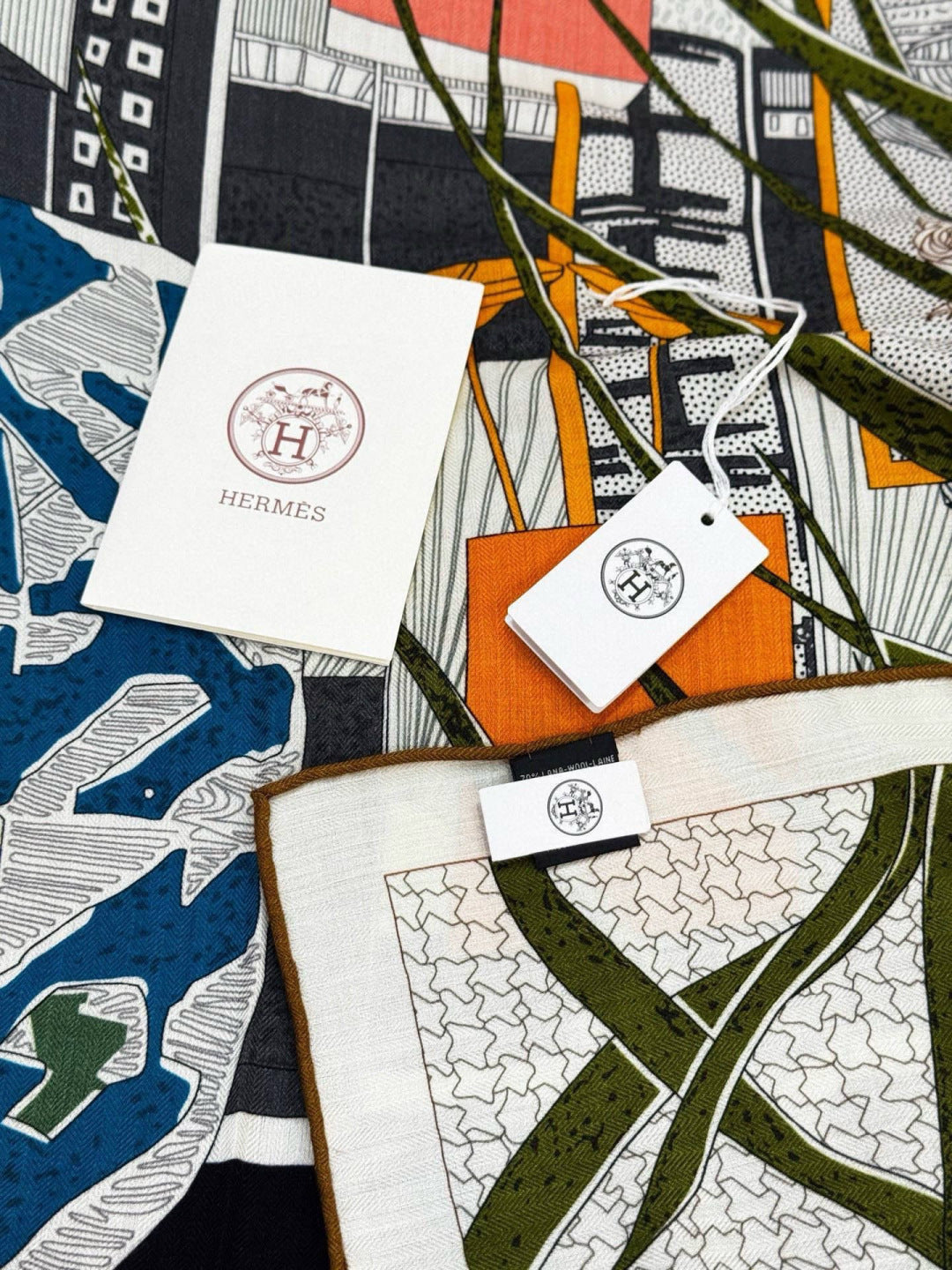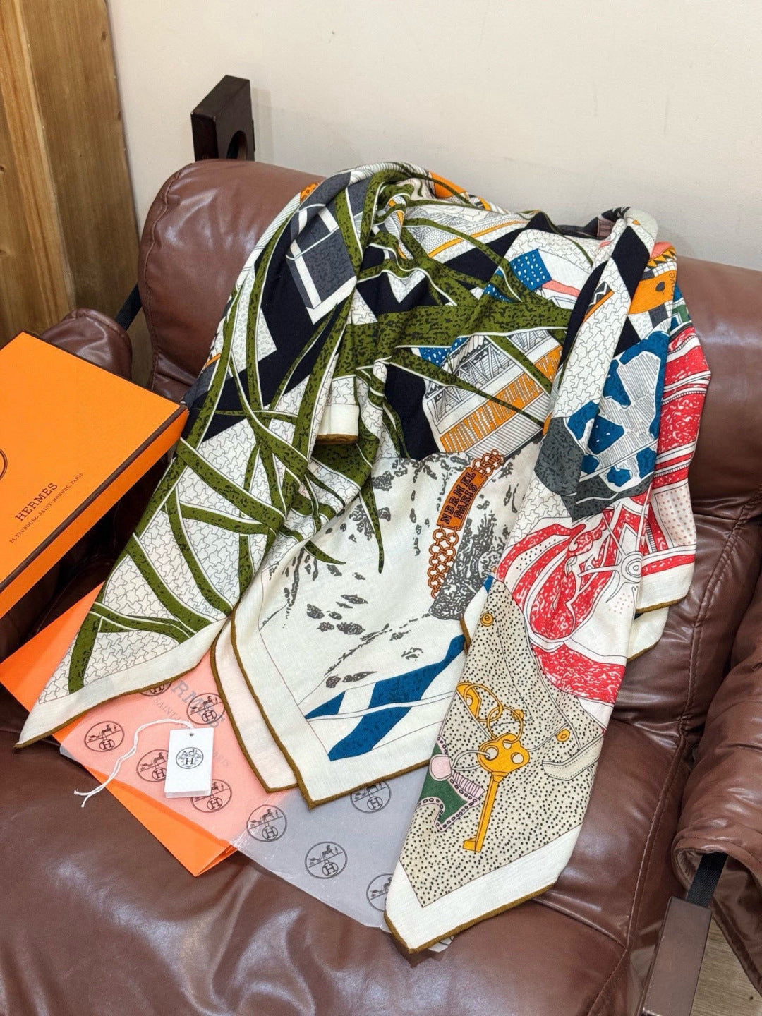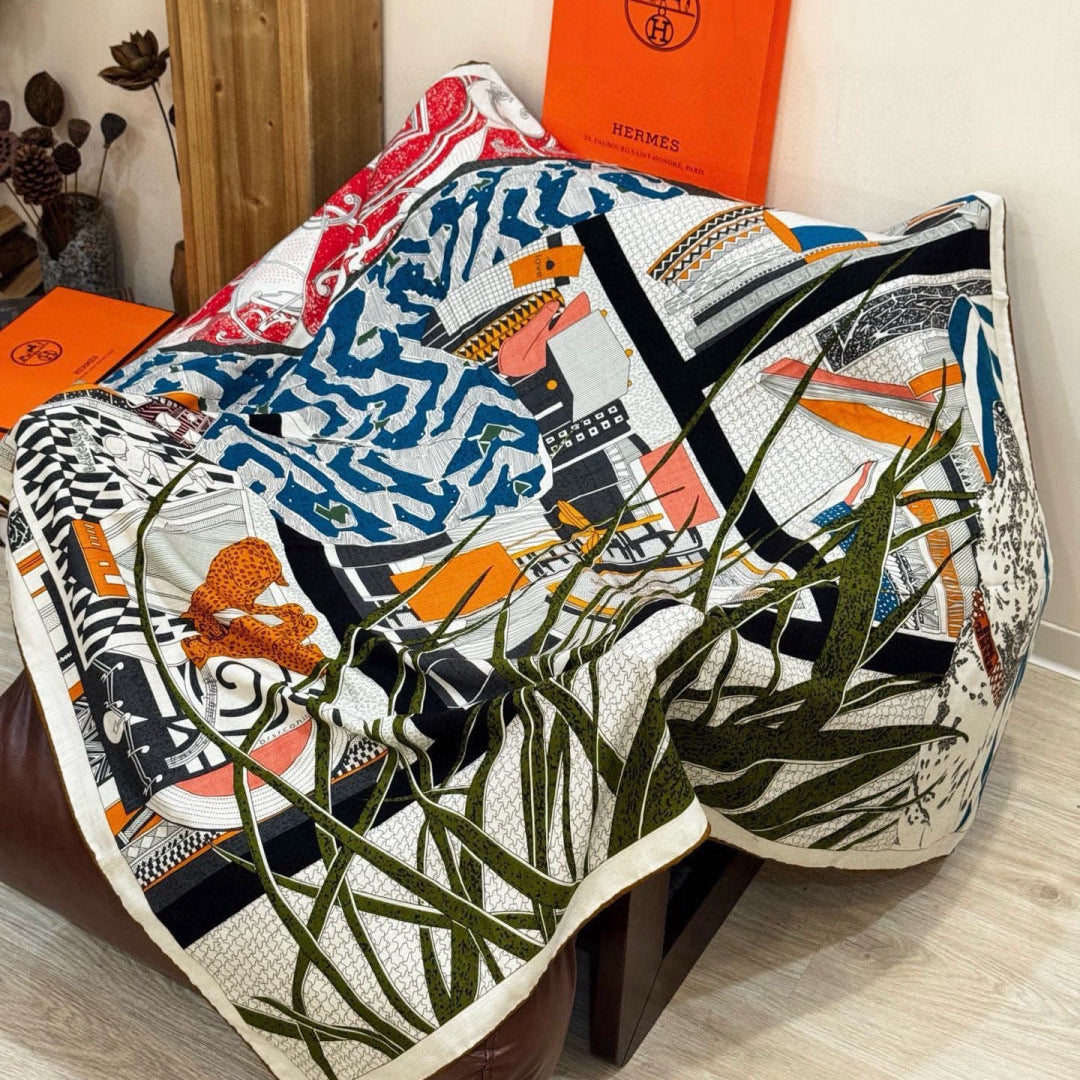 HM 25s Essential Scarf 140cm Green Colorful Cashmere Silk 967425