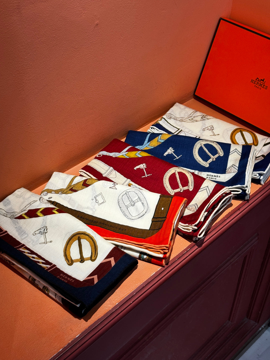 HM 25s Horse Reversible Scarf 140cm Blue Cashmere Silk 967390