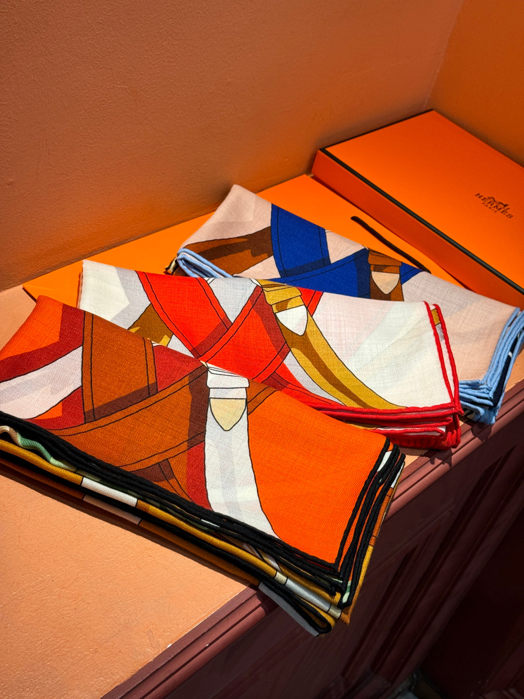 HM 25s Horse Reversible Scarf 140cm Orange Beige Cashmere Silk 967378