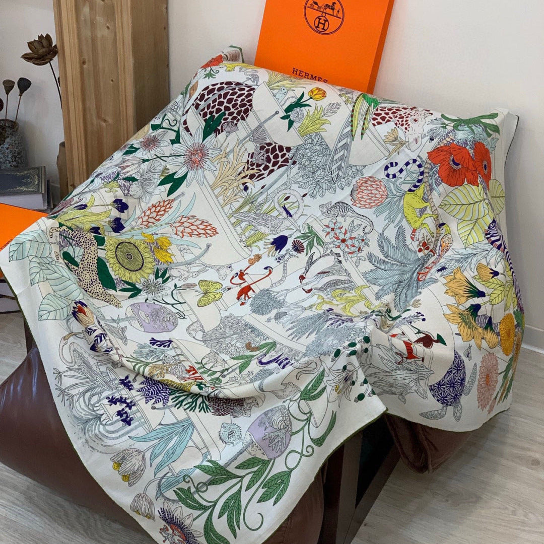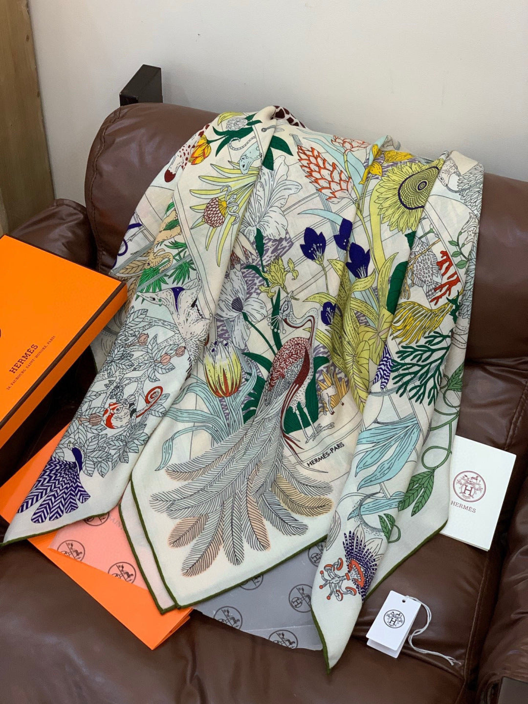 HM 25s Rainbow Scarf 140cm Beige Colorful Cashmere Silk 970927