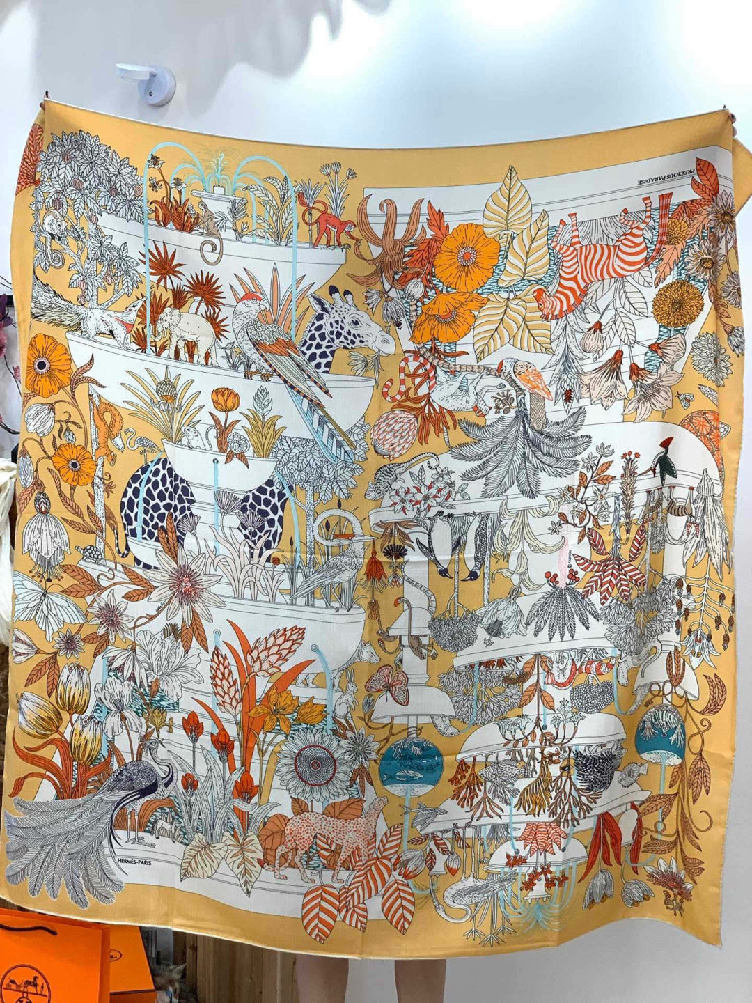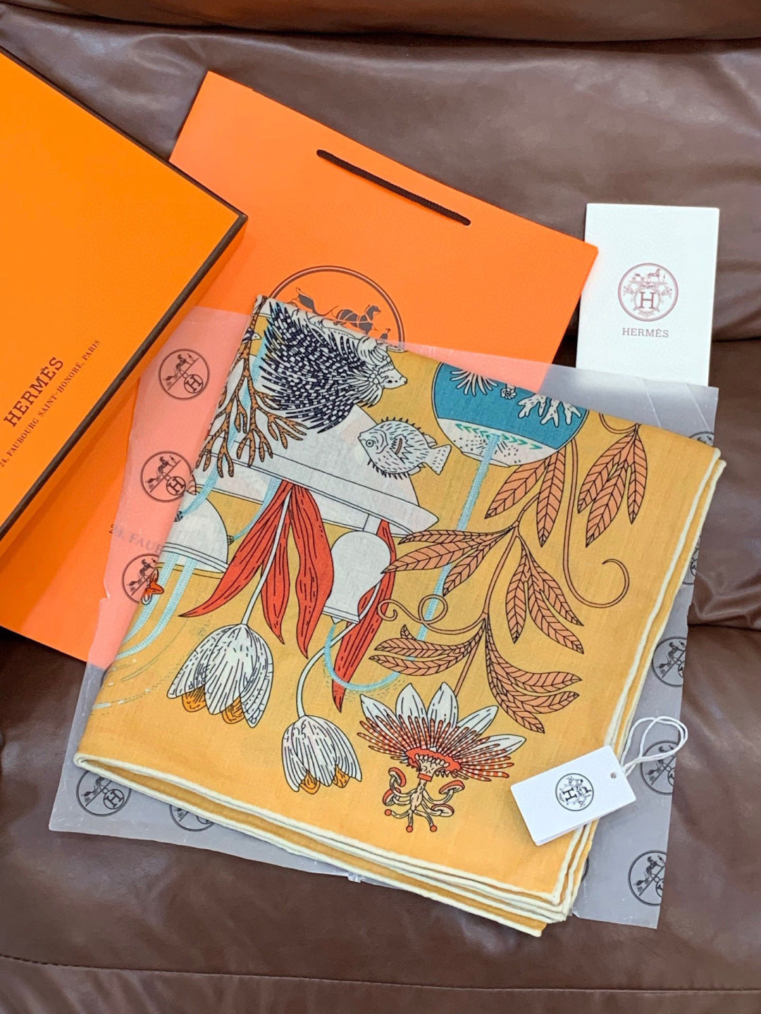 HM 25s Rainbow Scarf 140cm Yellow Colorful Cashmere Silk 970925