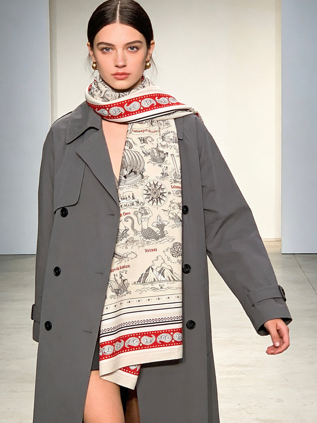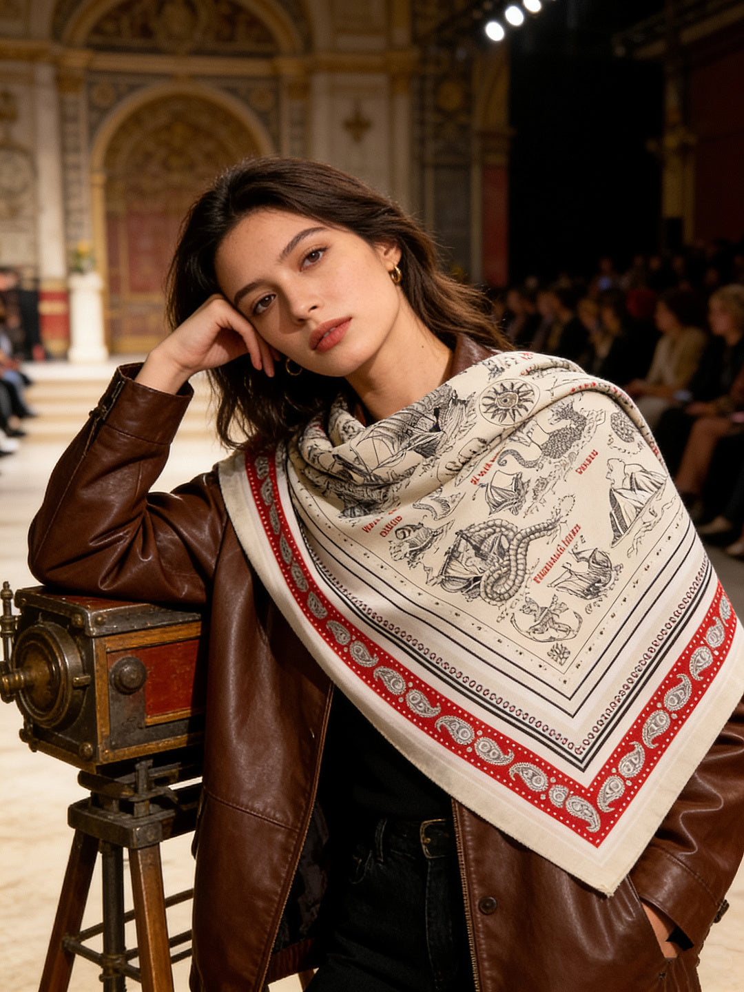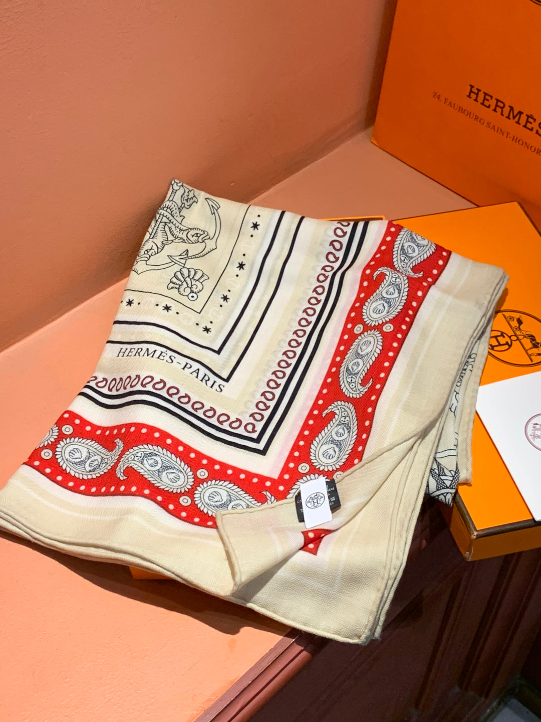 HM 25s Sailor Tattoo Scarf 140cm Red White Black Cashmere Silk 967418