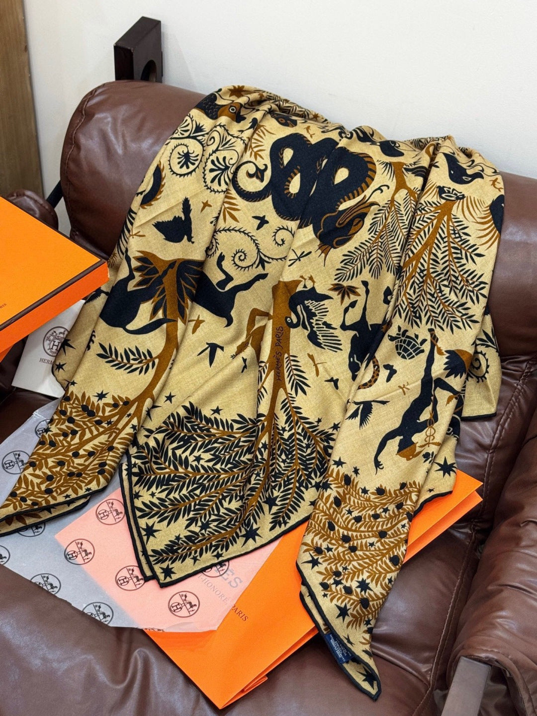 HM 25s Scarf 140cm Black Beige Cashmere Silk 962469