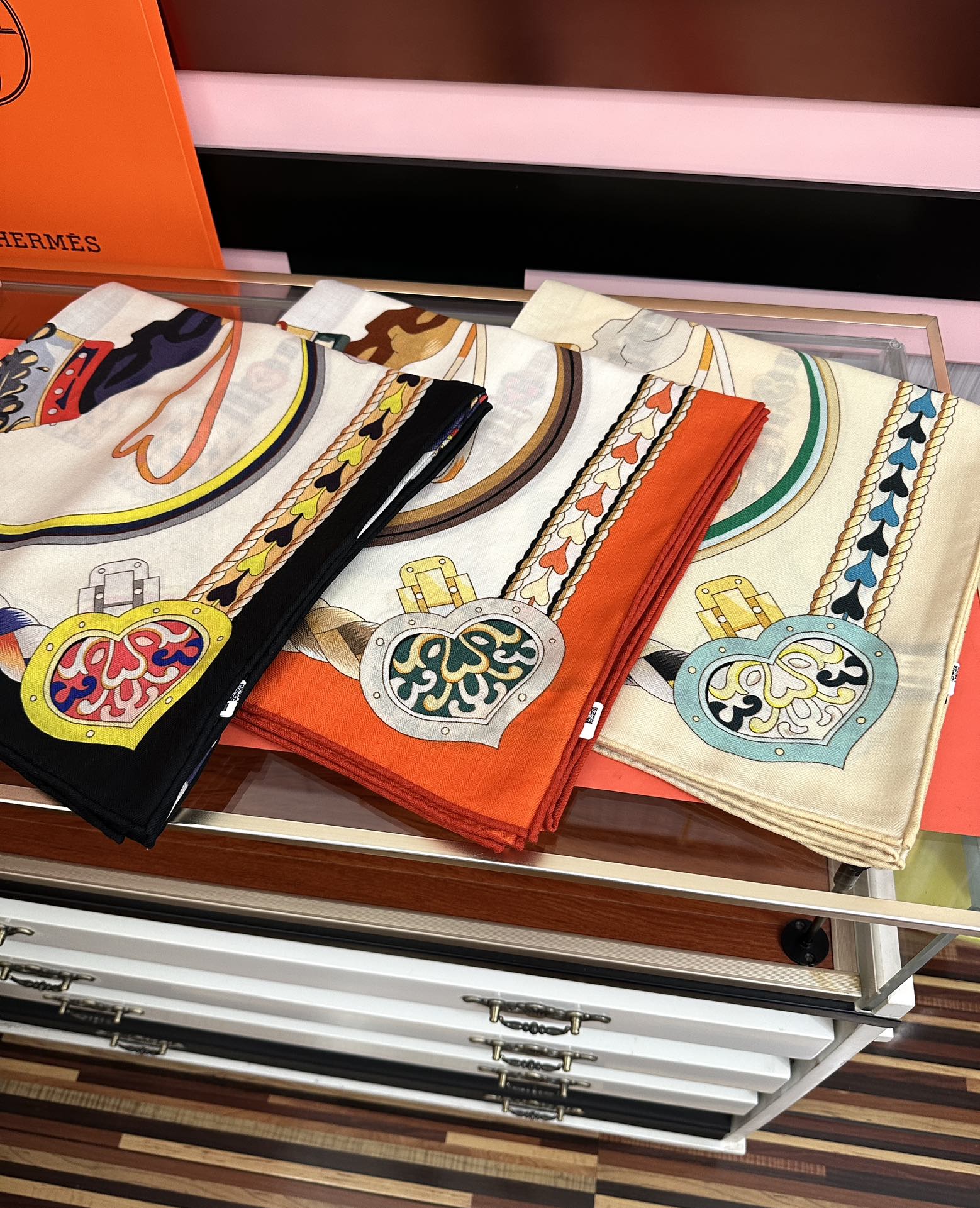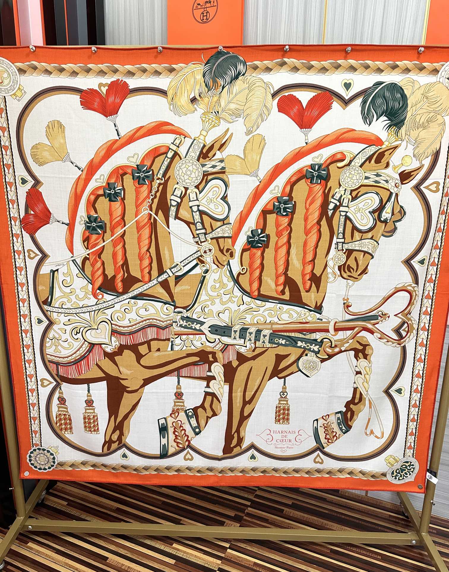 HM 25s Scarf 140cm Orange Beige Cashmere Silk 965623