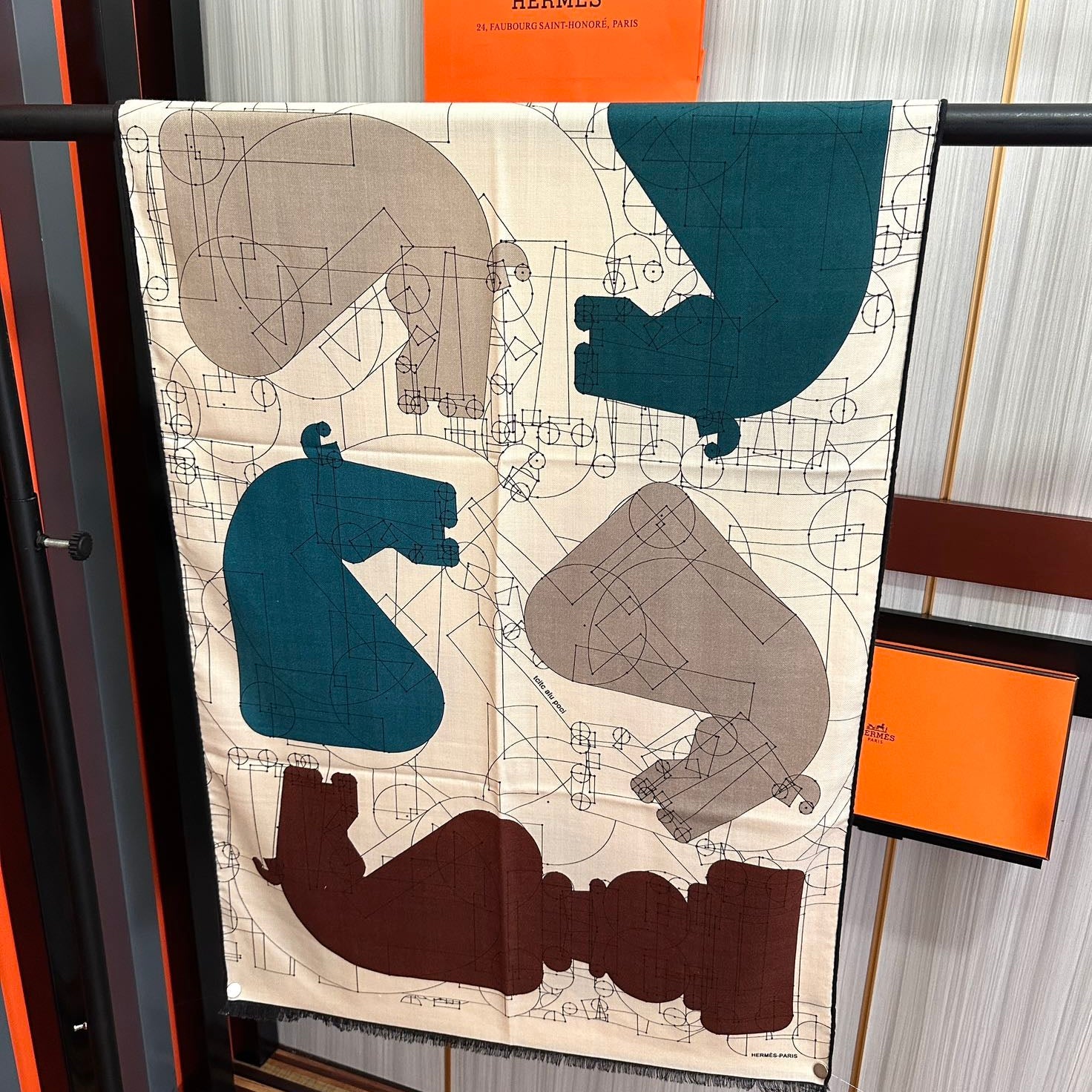 HM 25s Scarf 185 Blue Brown Creams Cashmere 976447