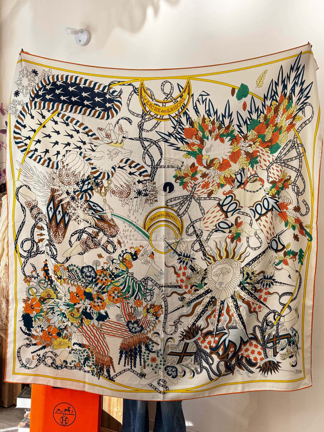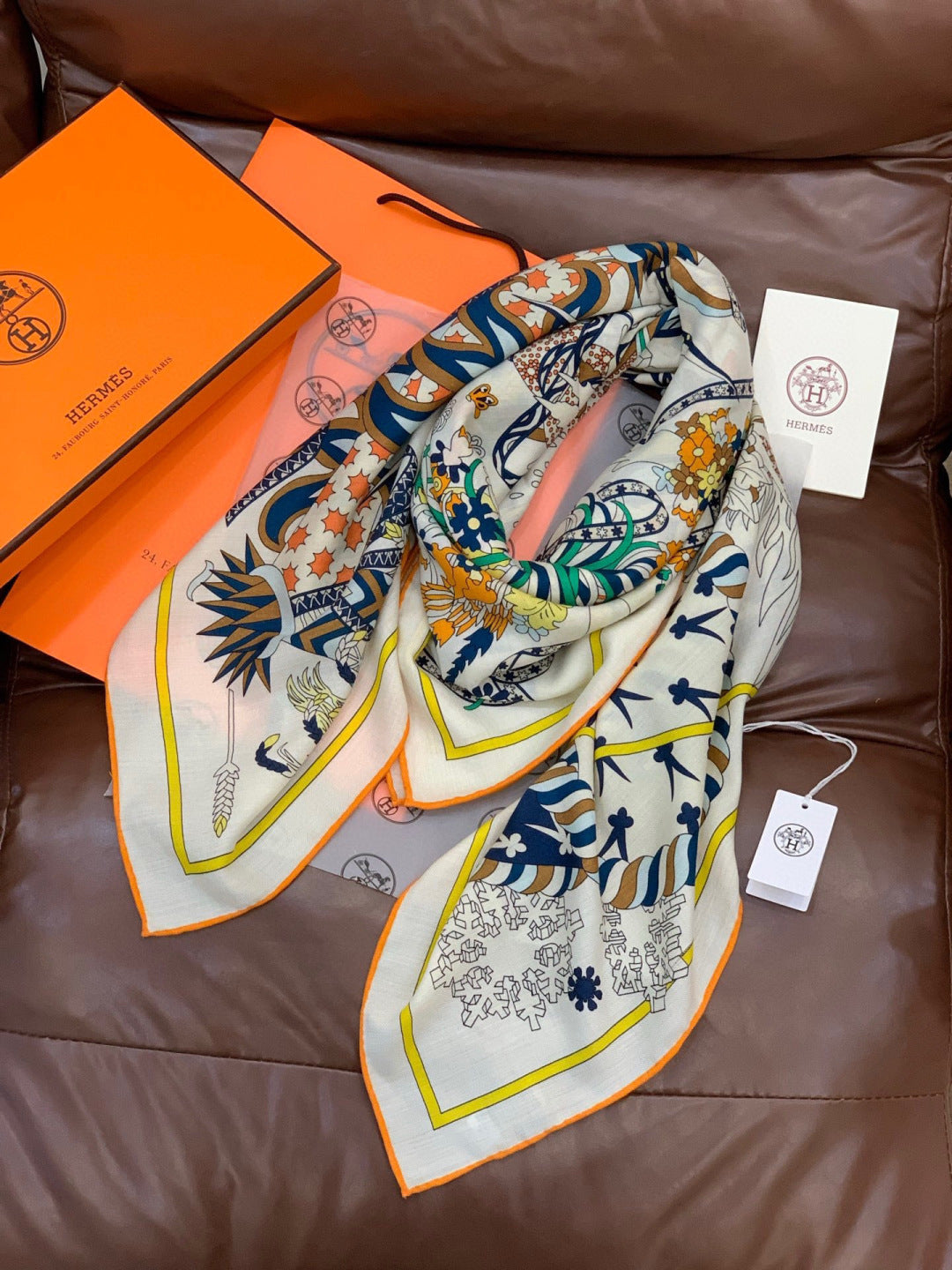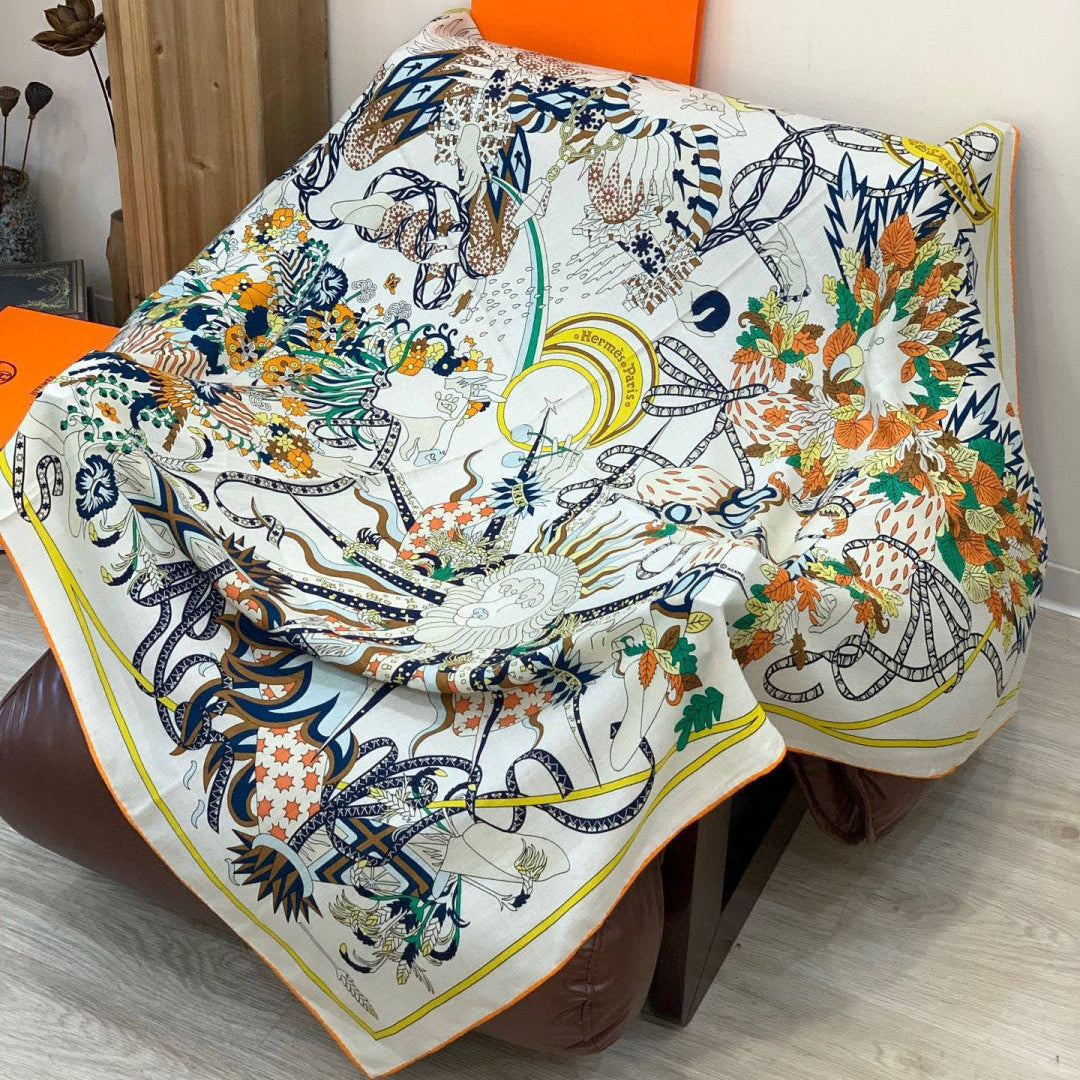 HM 25s The King Scarf 140cm White Blue Colorful Cashmere 973054