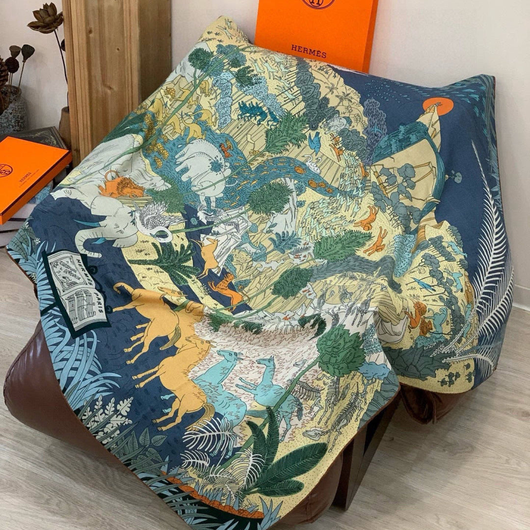 HM 25s The King Scarf 140cm Blue Green Cashmere 973044