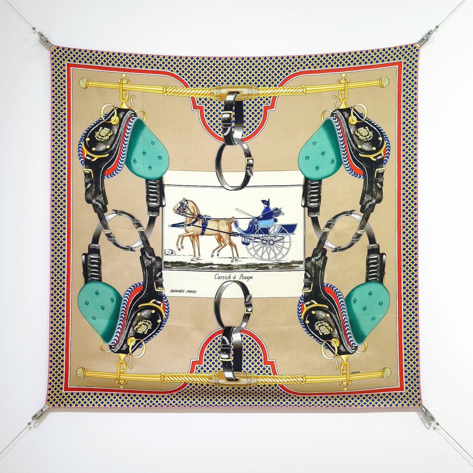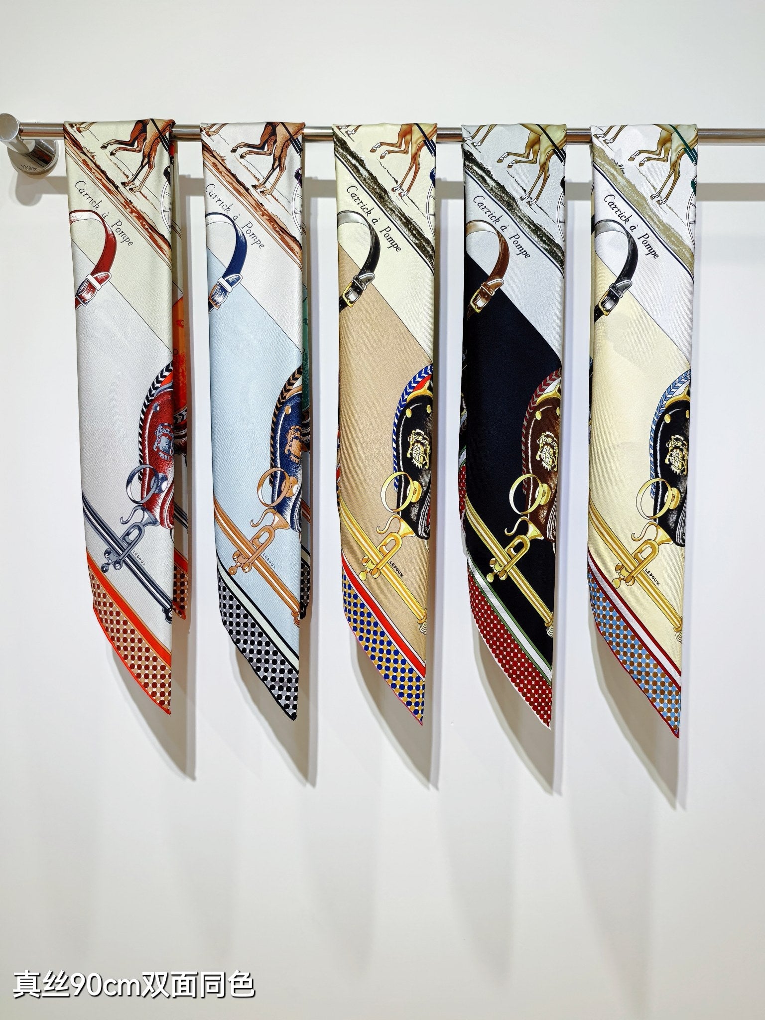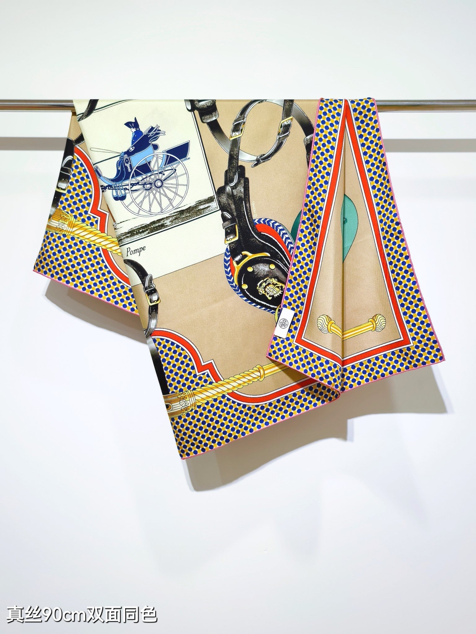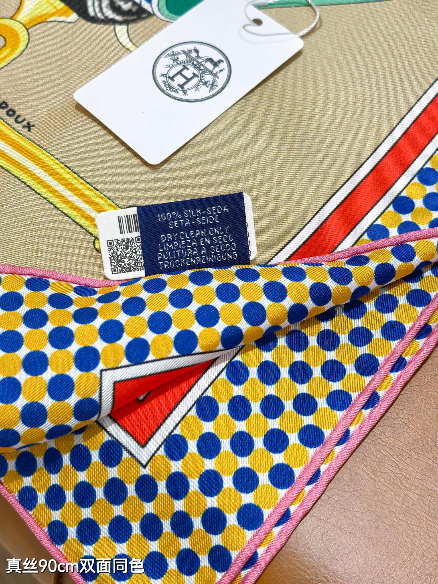 HM 26s 90 Double Sided Scarf Beige Colorful Mulberry Silk 145745