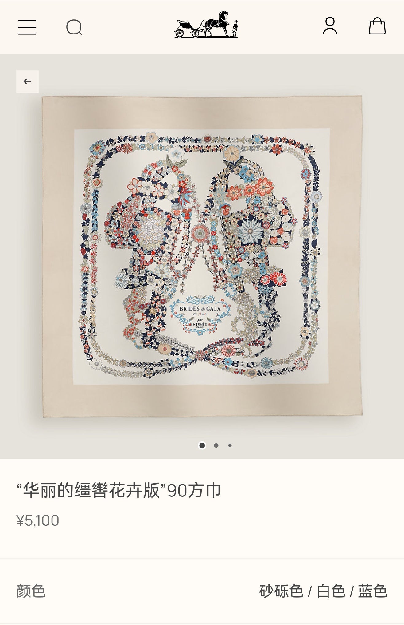 HM 26s 90 Double Sided Scarf Beige White Colorful Mulberry Silk 145755