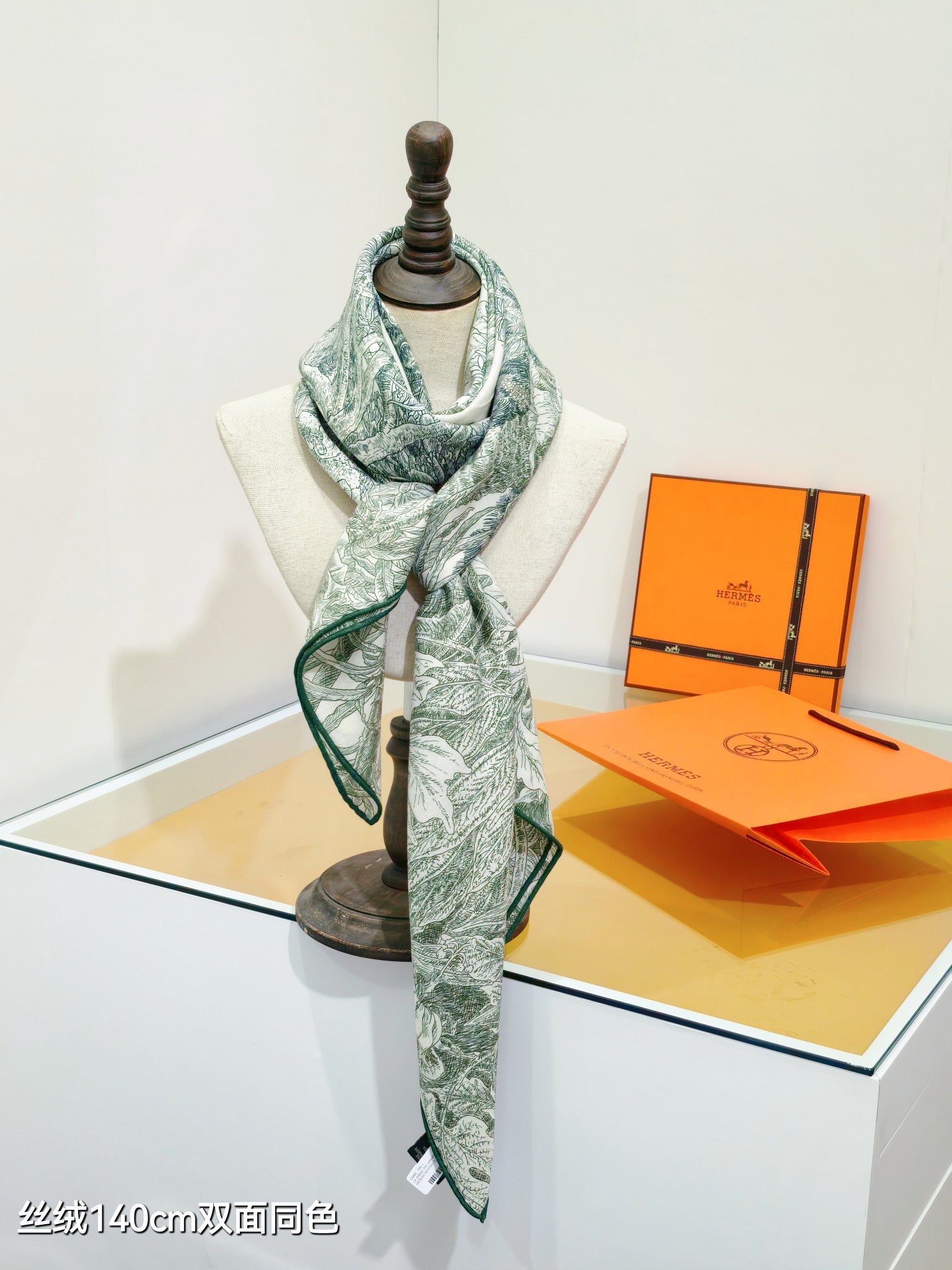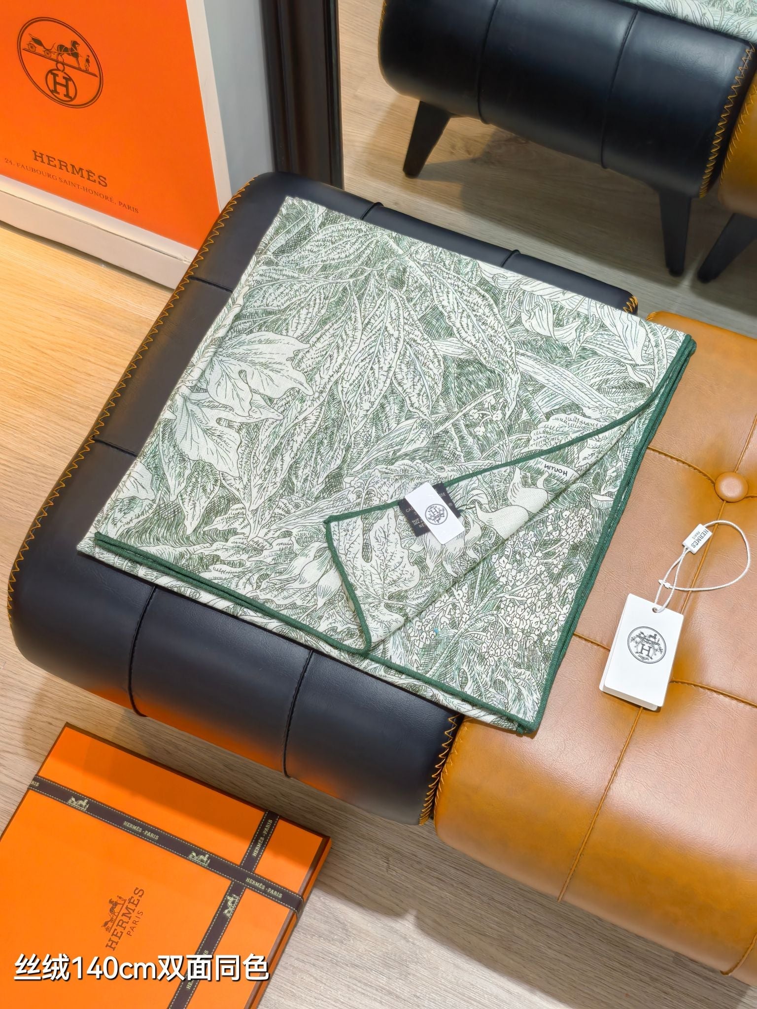 HM 26s 90 Double Sided Scarf Green Gray Colorful Mulberry Silk 141473