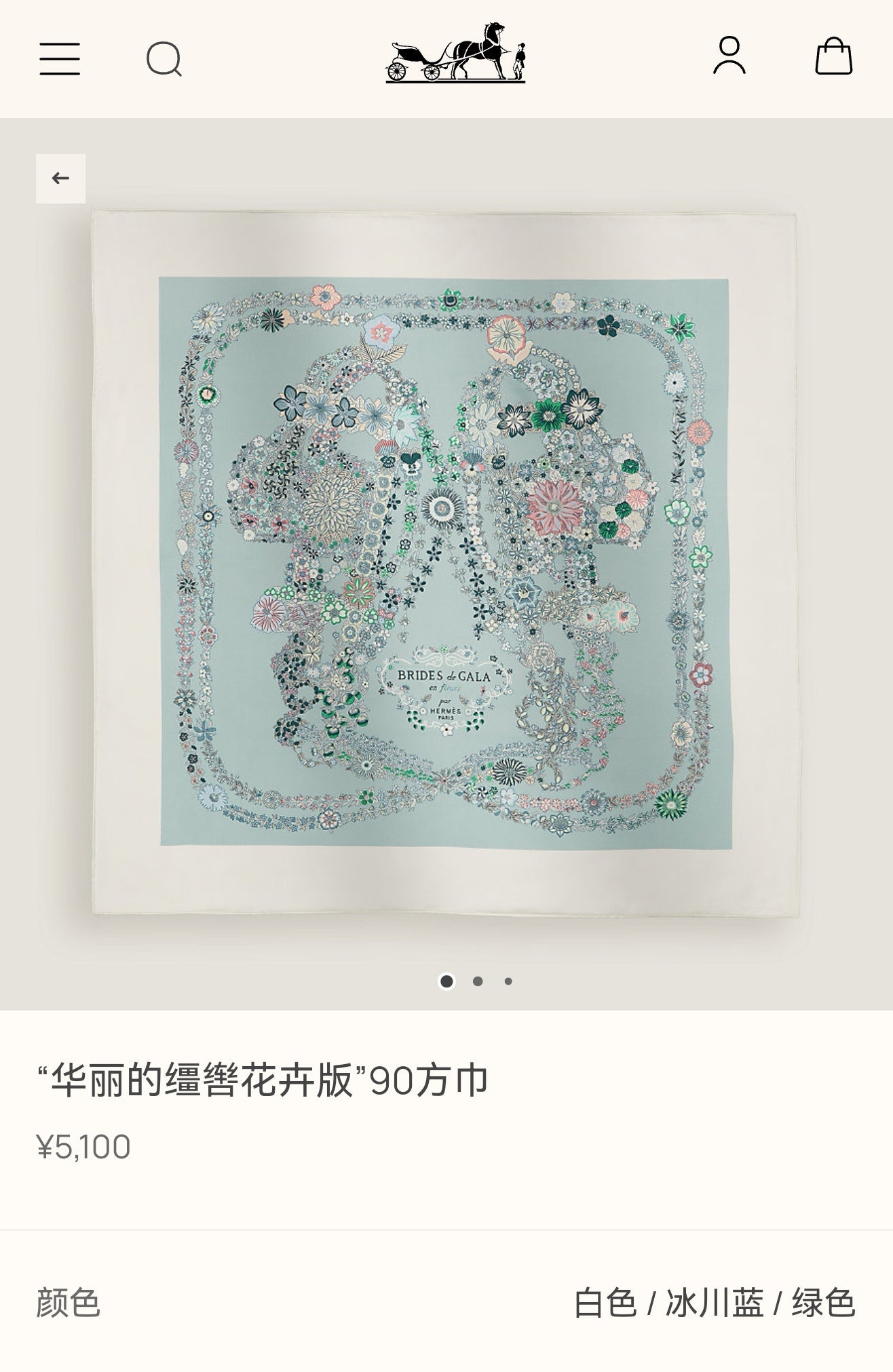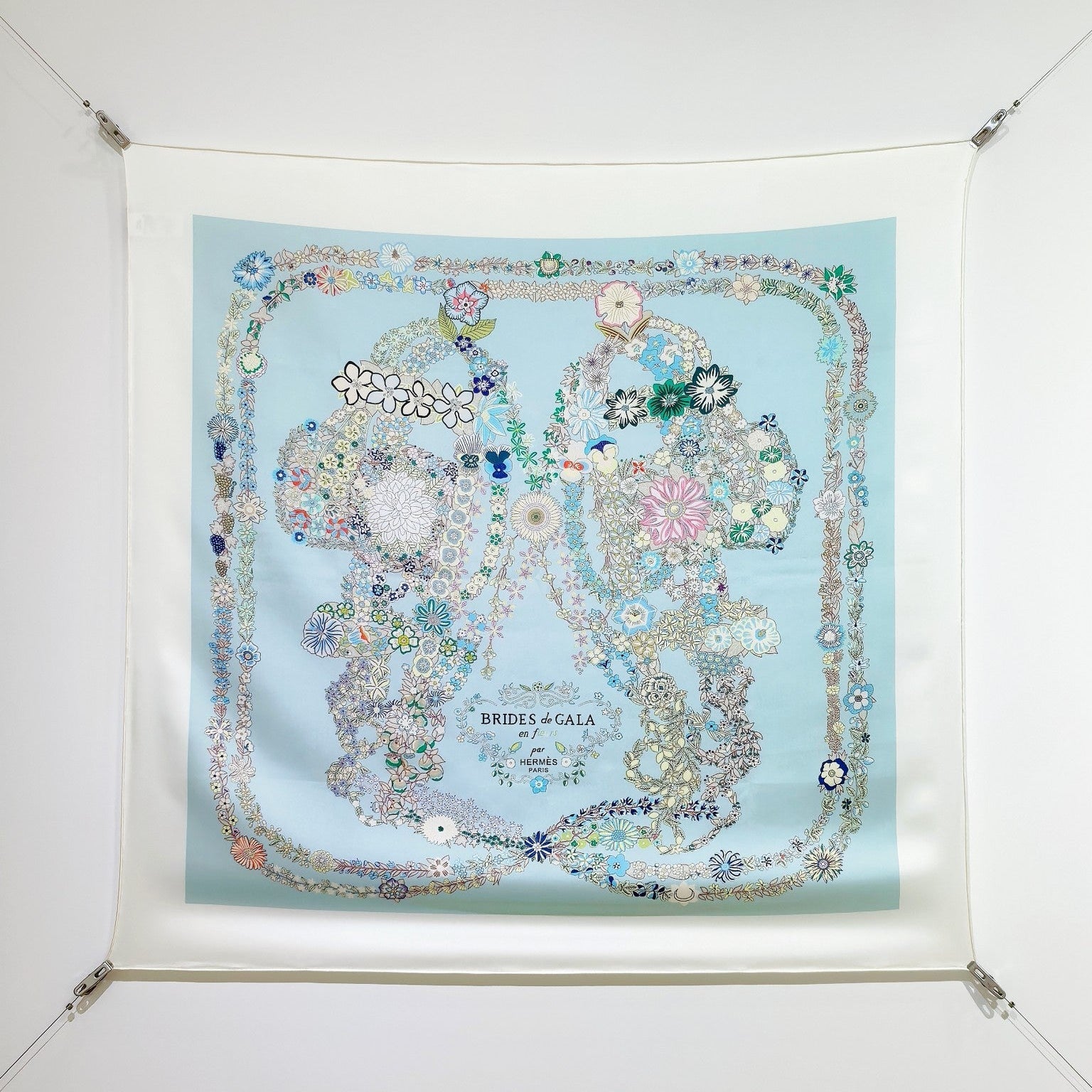 HM 26s 90 Double Sided Scarf Light Blue White Colorful Mulberry Silk 145754