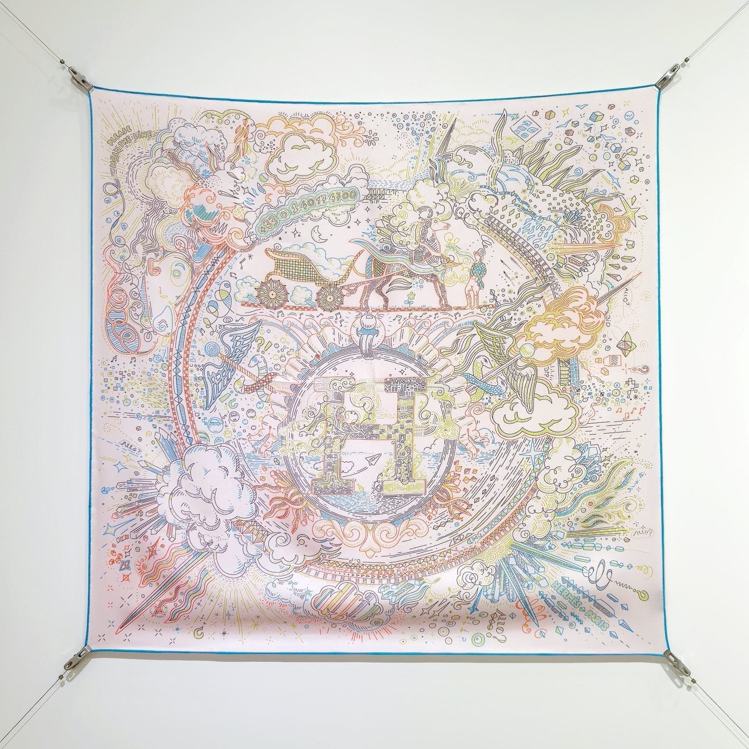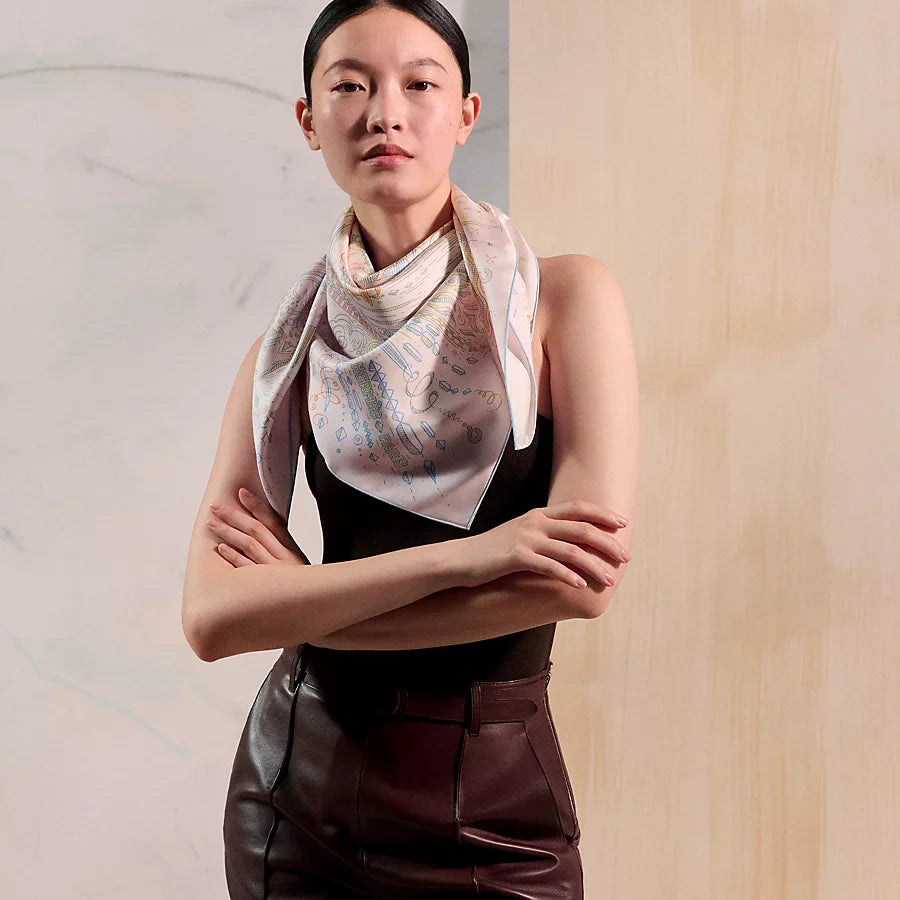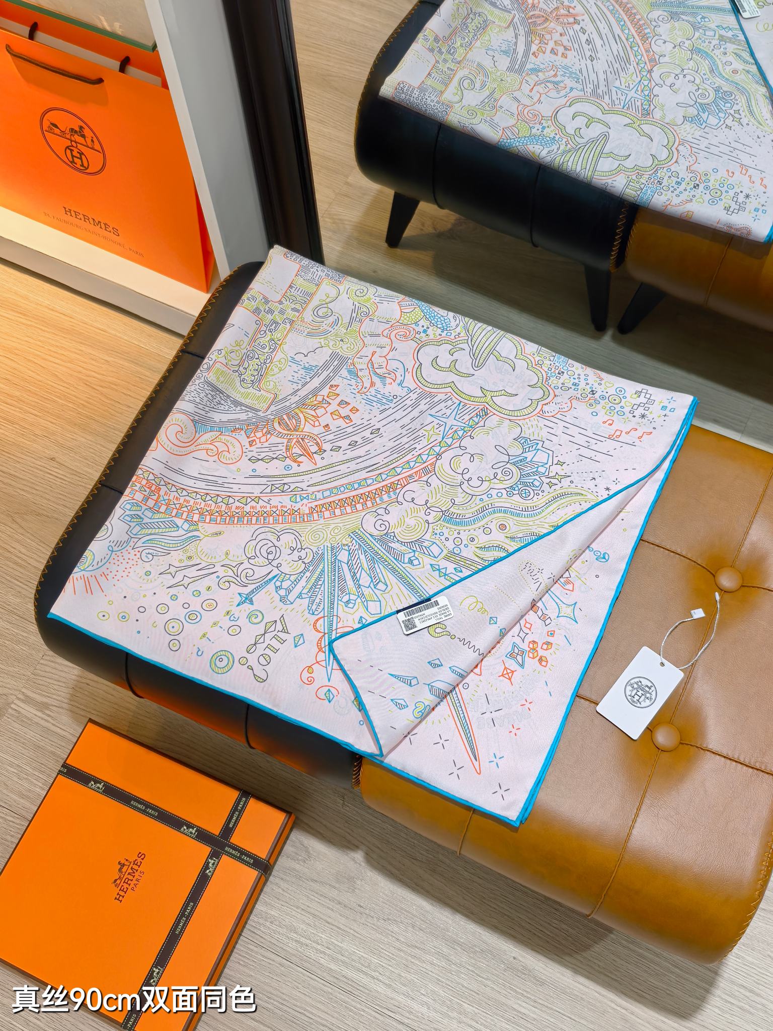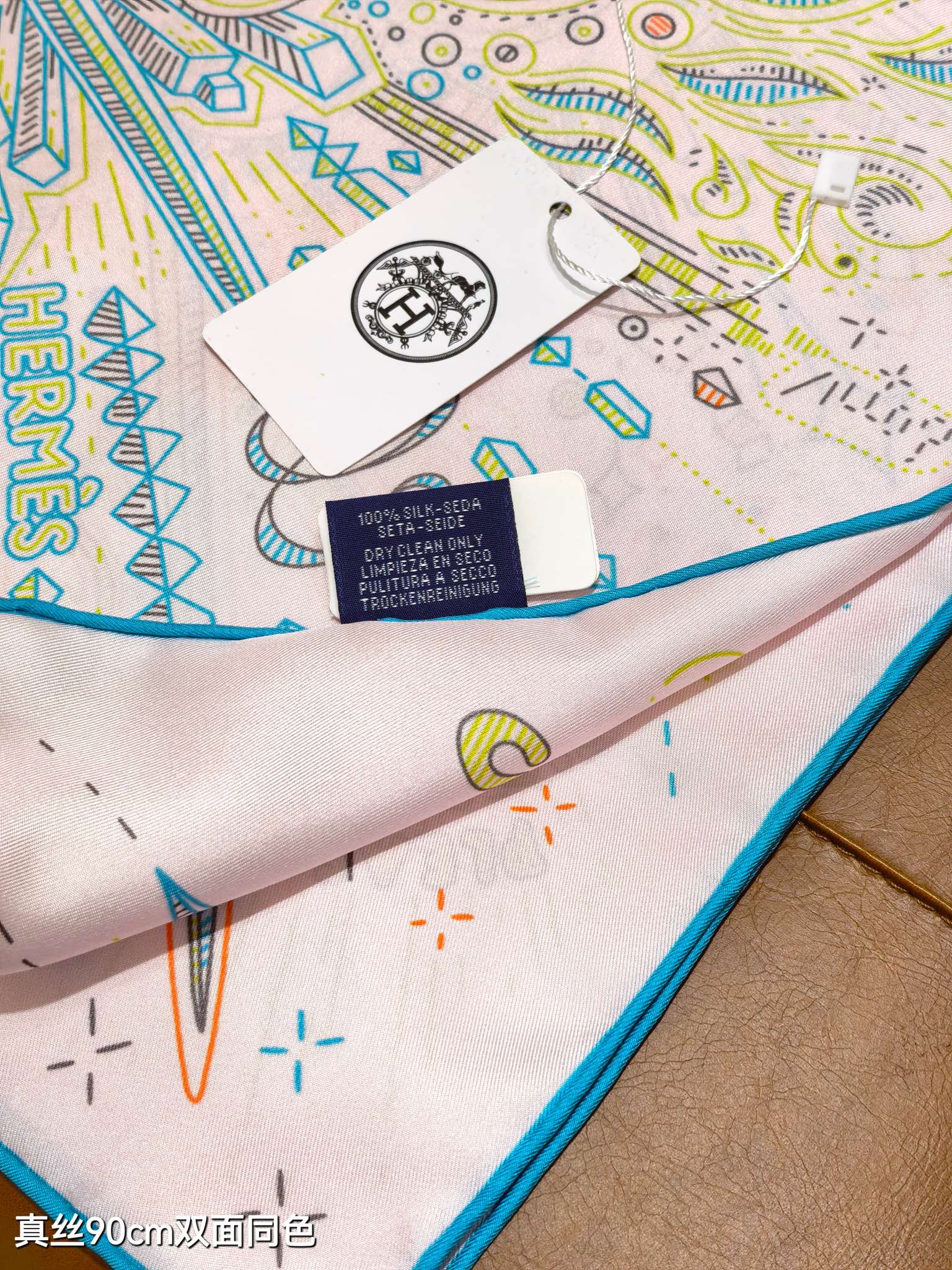 HM 26s 90 Double Sided Scarf Light Pink Blue Colorful Mulberry Silk 145750