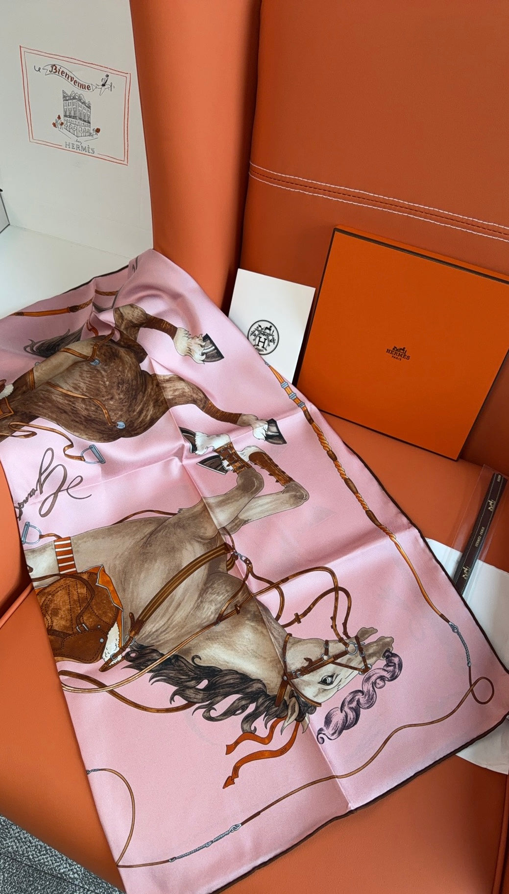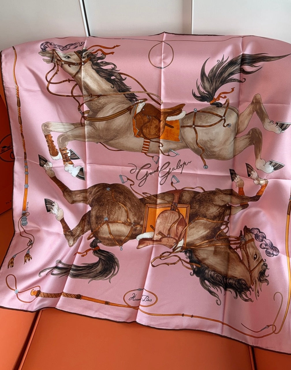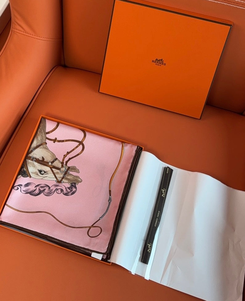 HM 26s 90 House Scarf Pink Colorful Mulberry Silk 153359