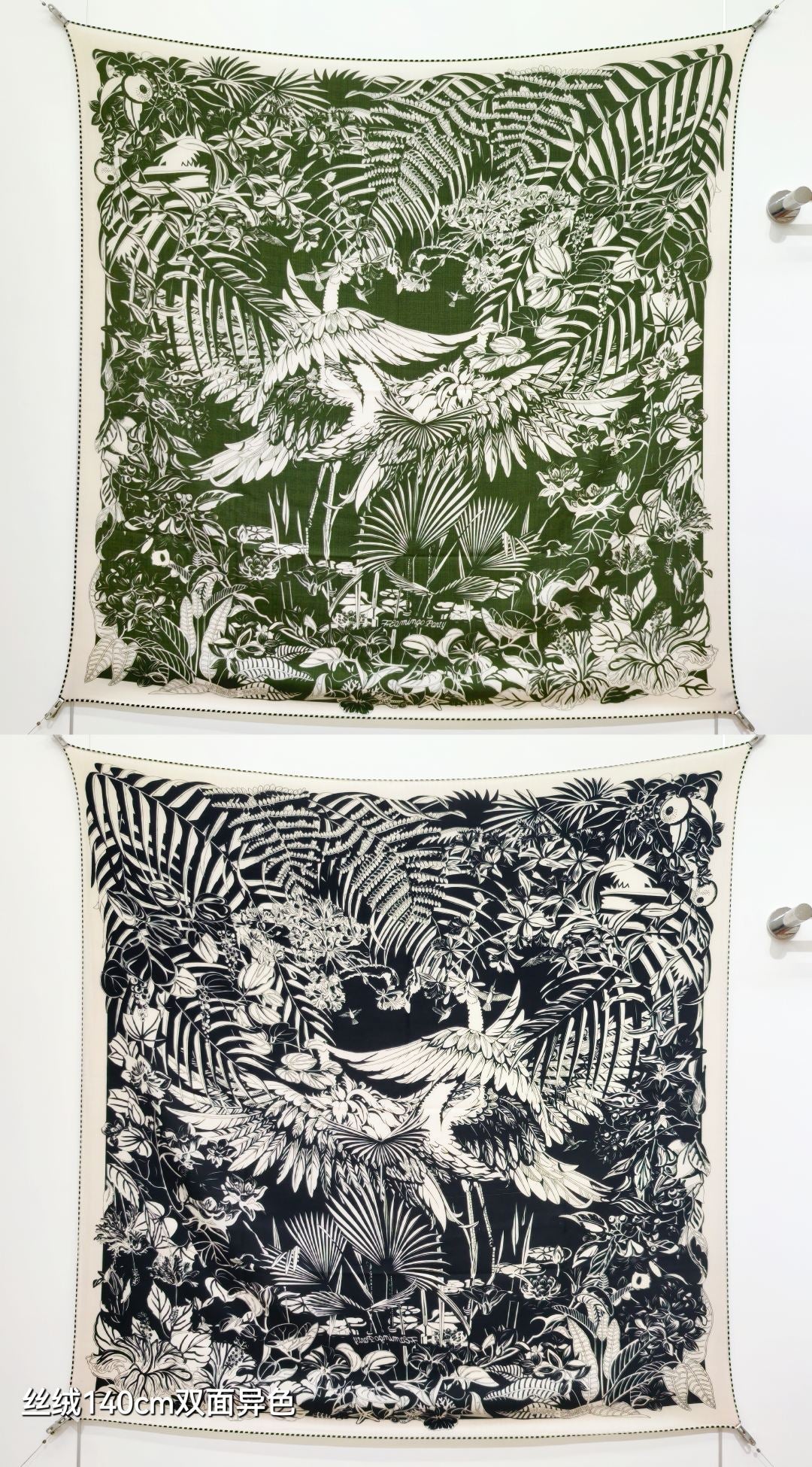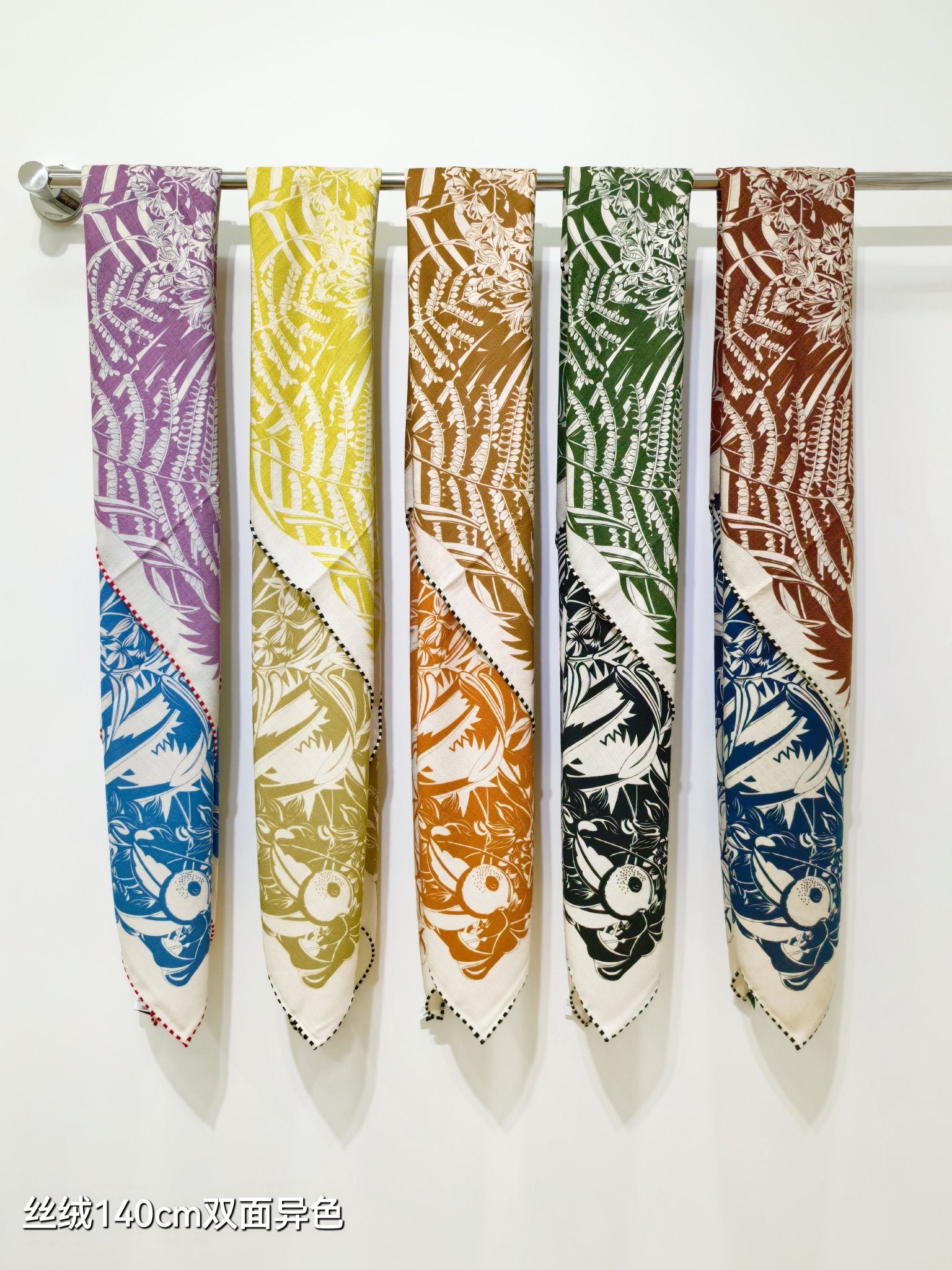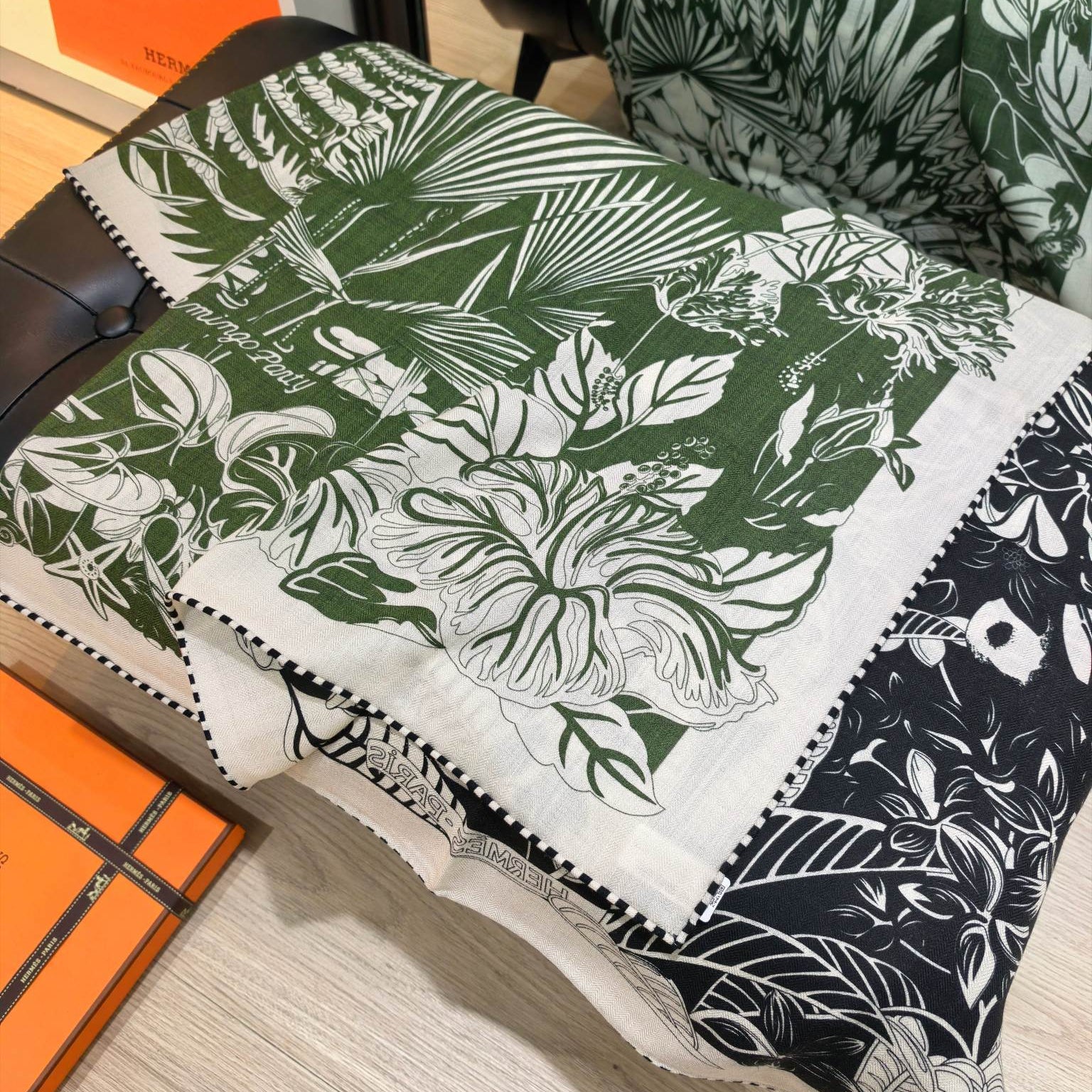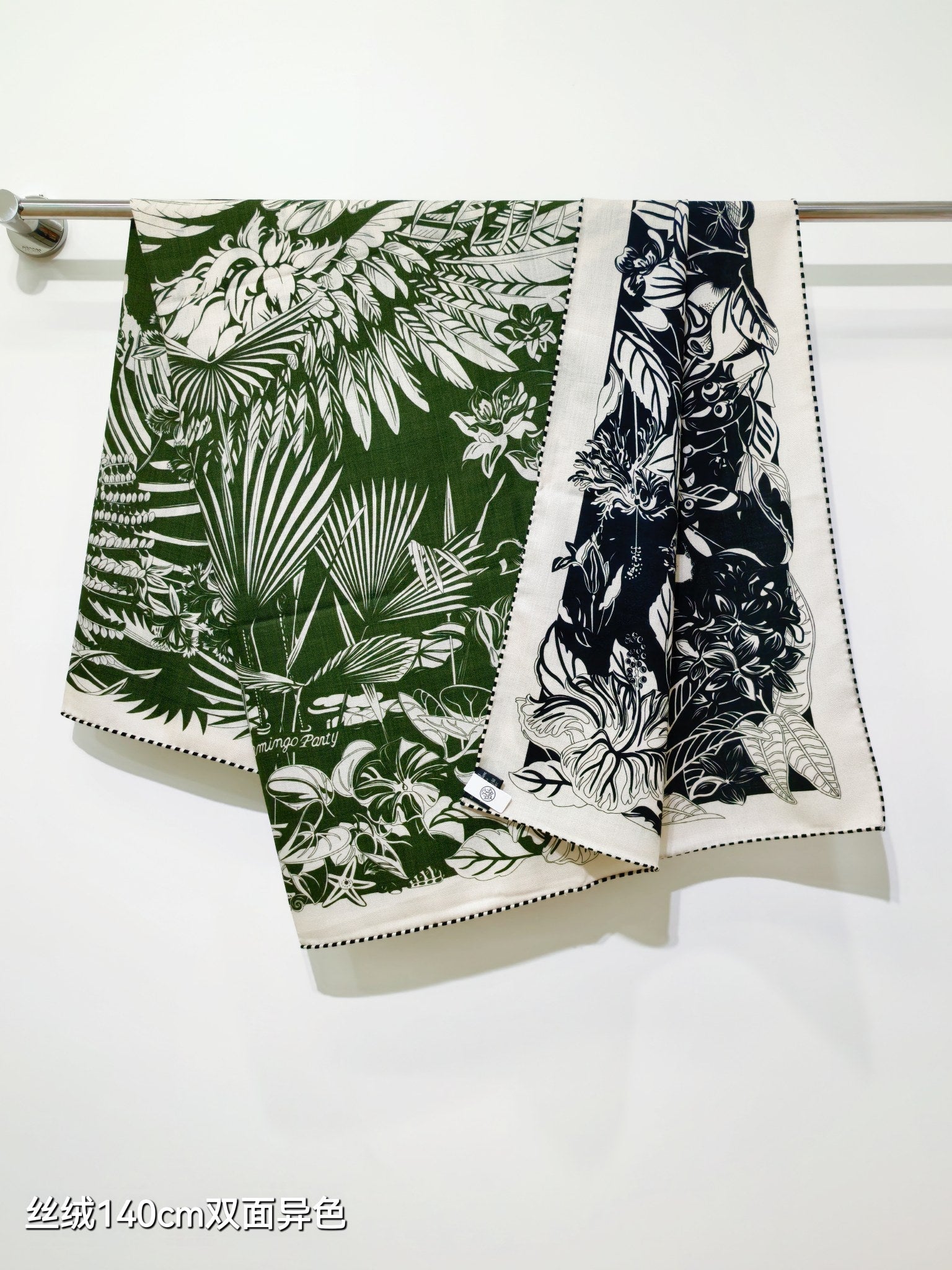 HM 26s Flamingo Party Scarf 140 Green Blue Cashmere Silk 139240