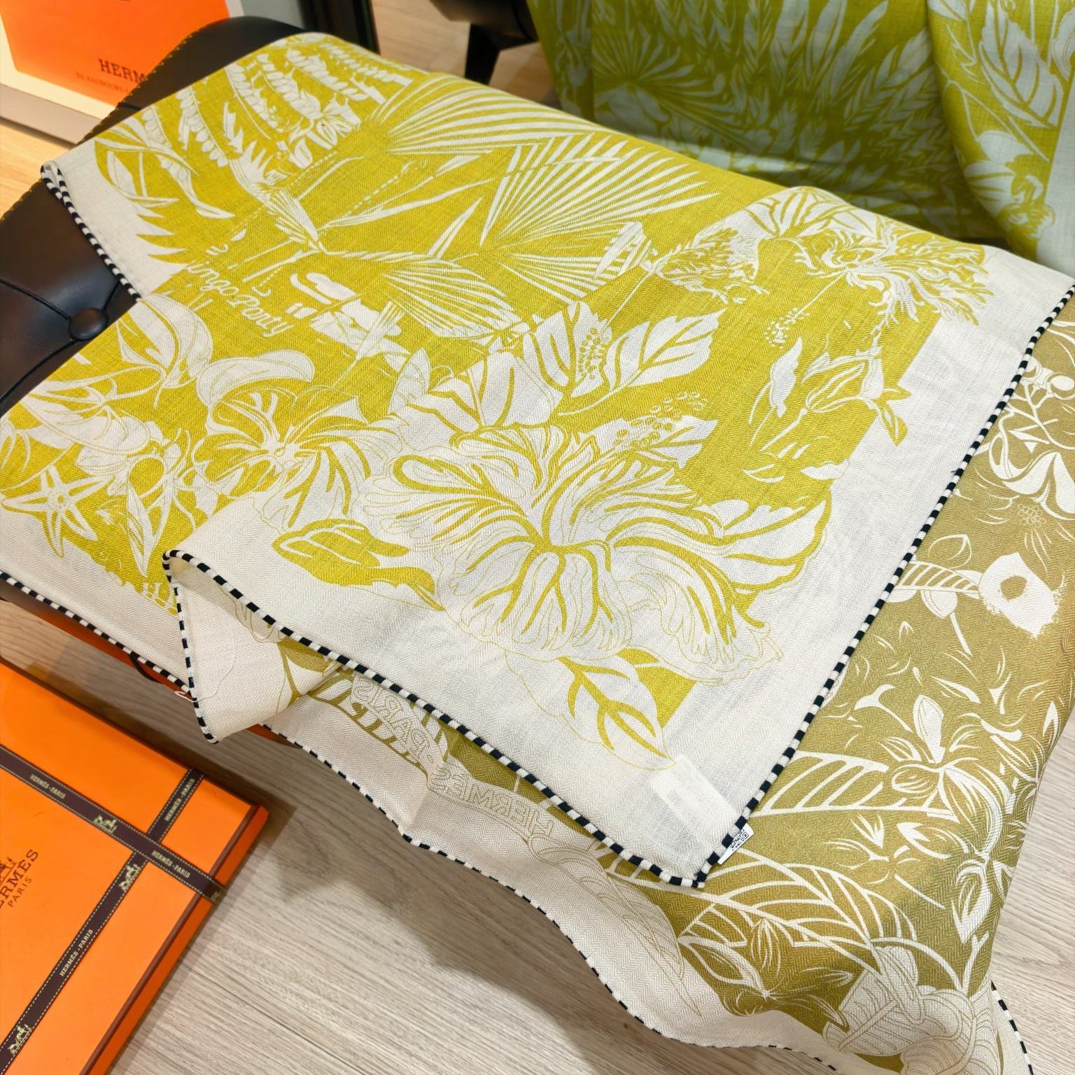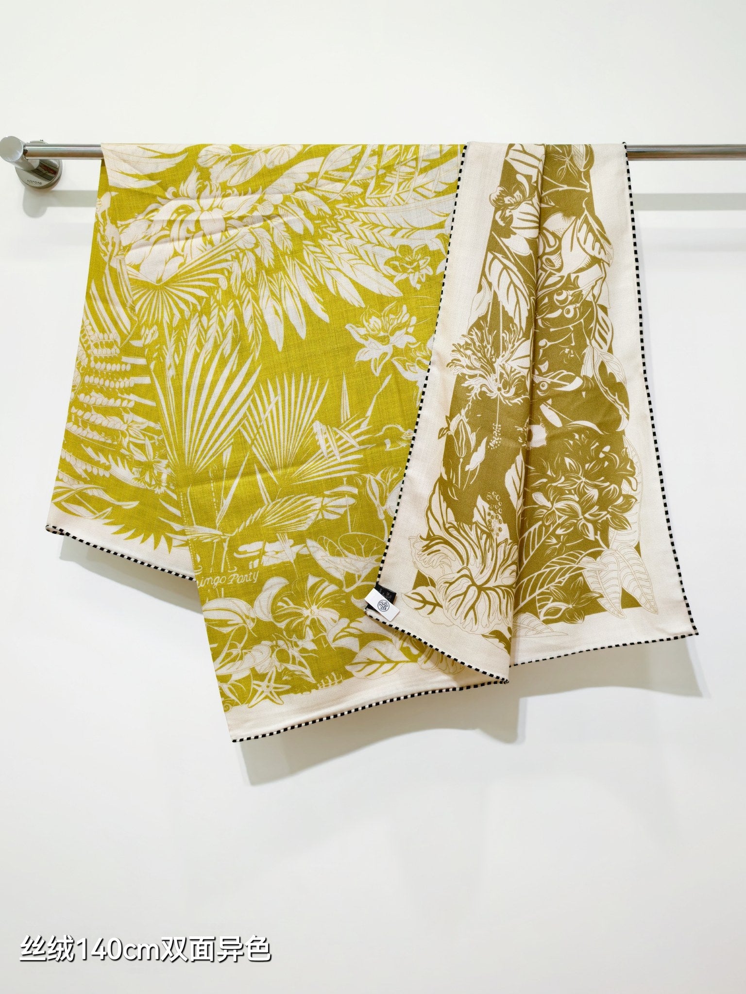 HM 26s Flamingo Party Scarf 140 Yellow Beige Cashmere Silk 139242