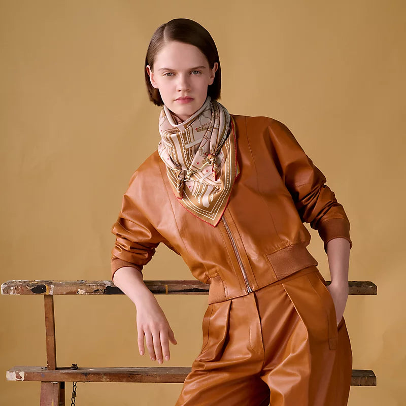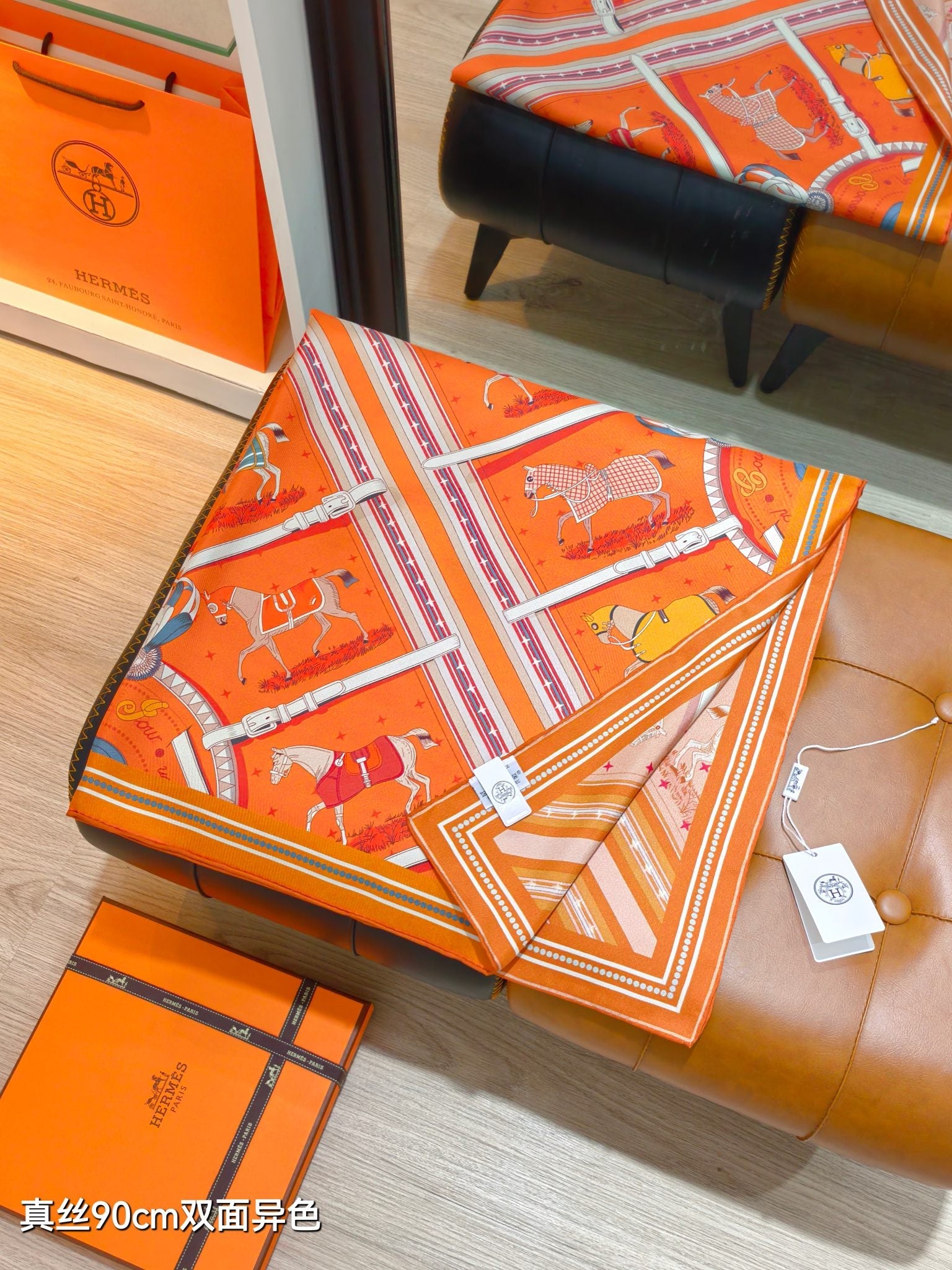 HM 26s Horse Scarf 140 Orange Colorful Cashmere Silk 139219