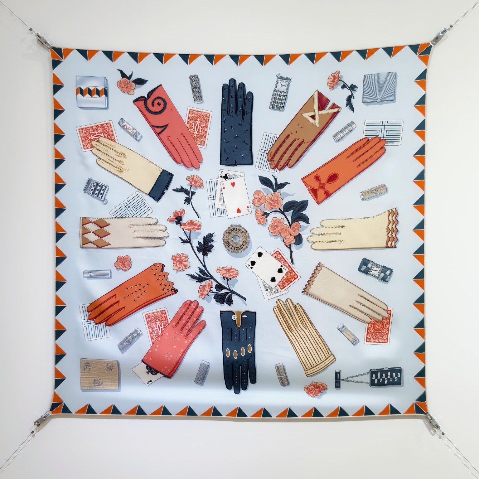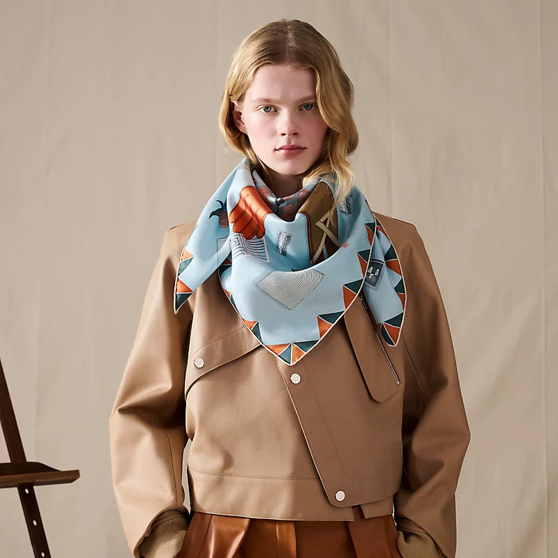 HM 26s Horse Scarf 90 Baby Blue Colorful Cashmere Silk 134430