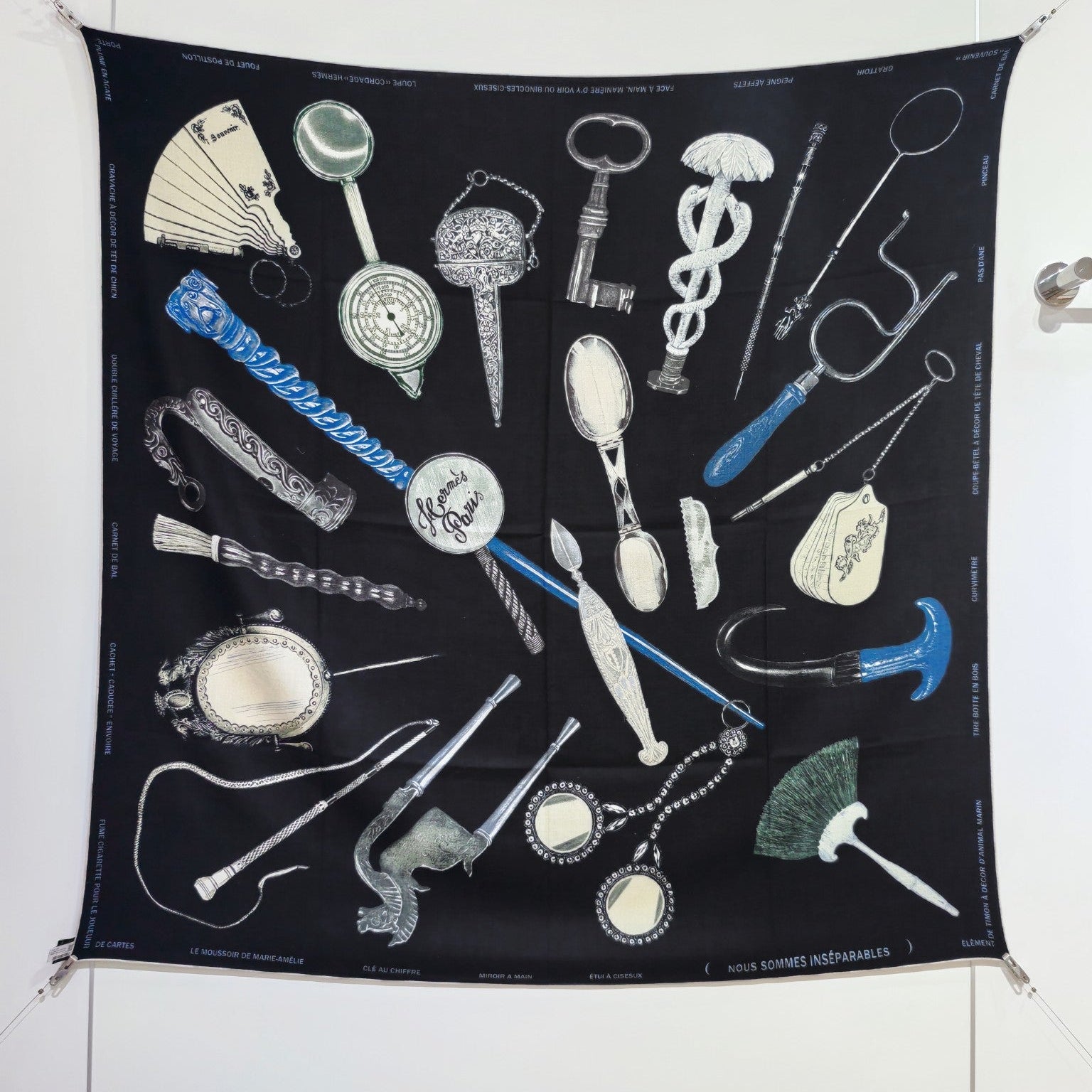 HM 26s Horse Scarf 90 Black Colorful Cashmere Silk 138081