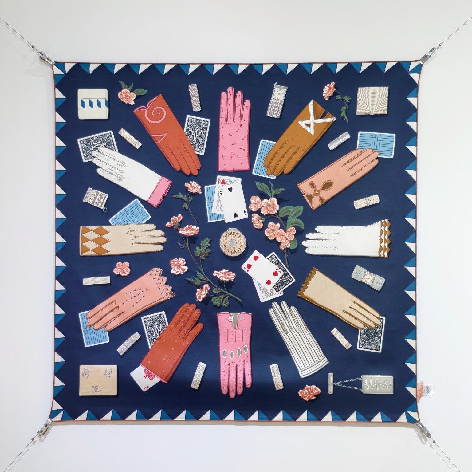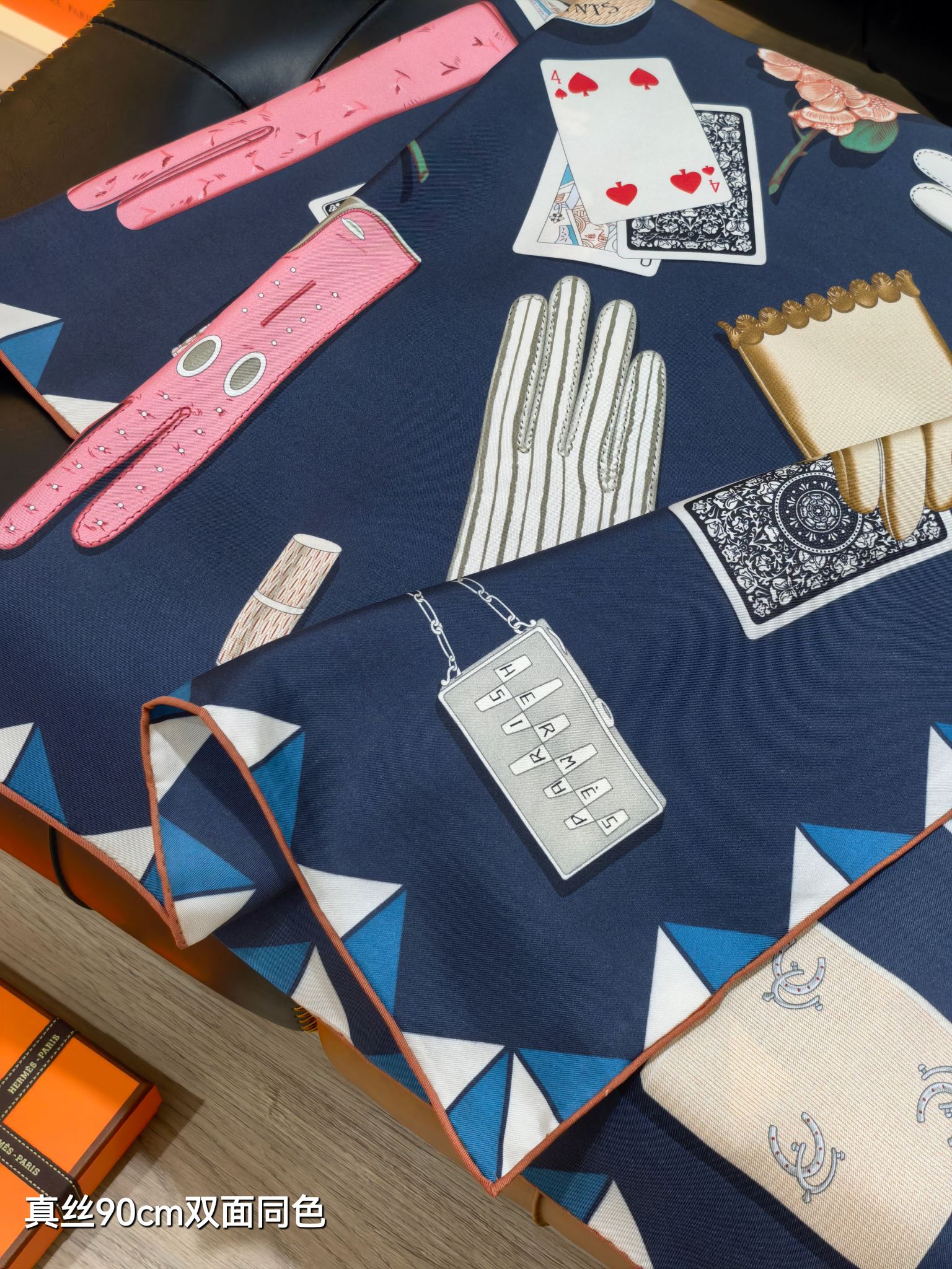 HM 26s Horse Scarf 90 Navy Blue Colorful Cashmere Silk 134432
