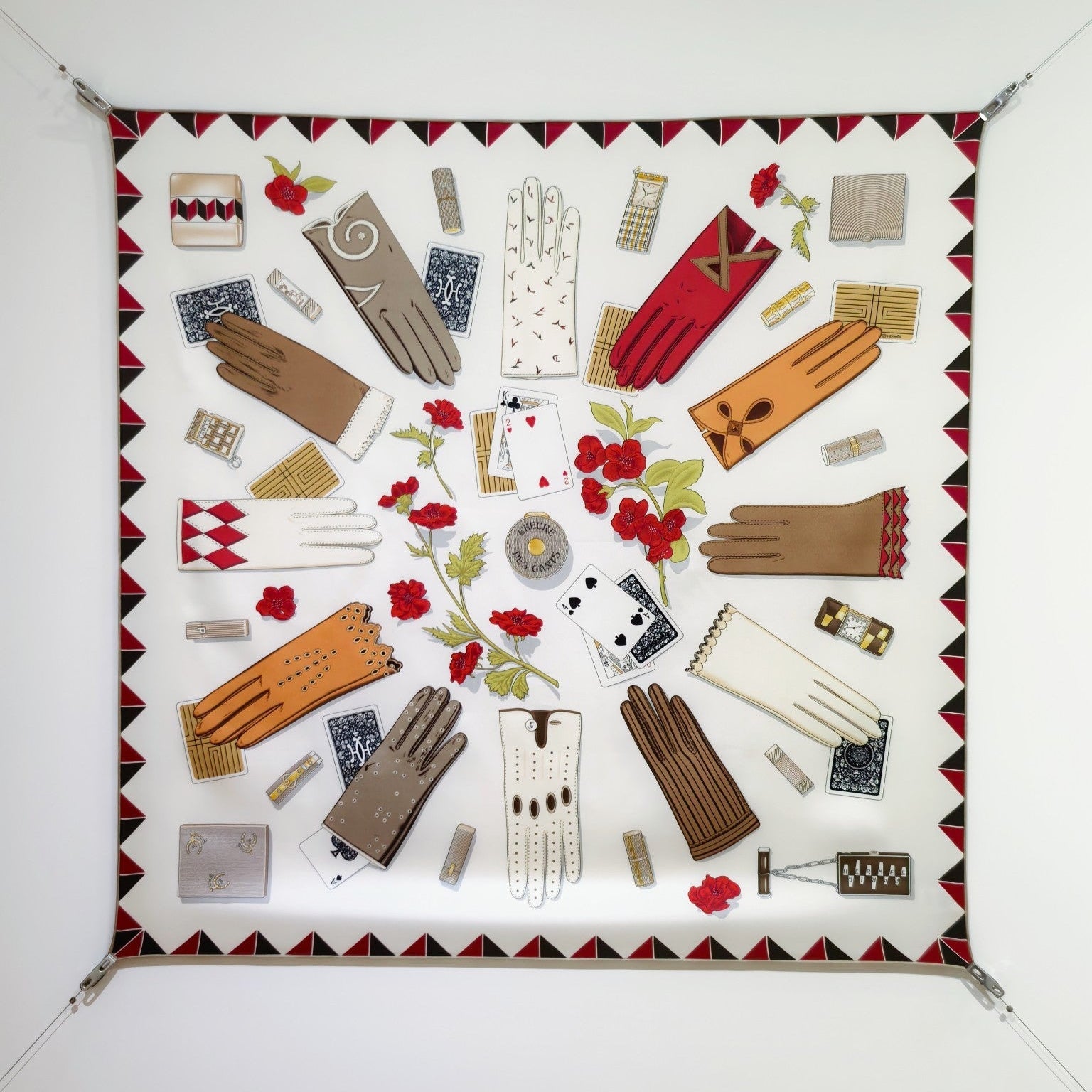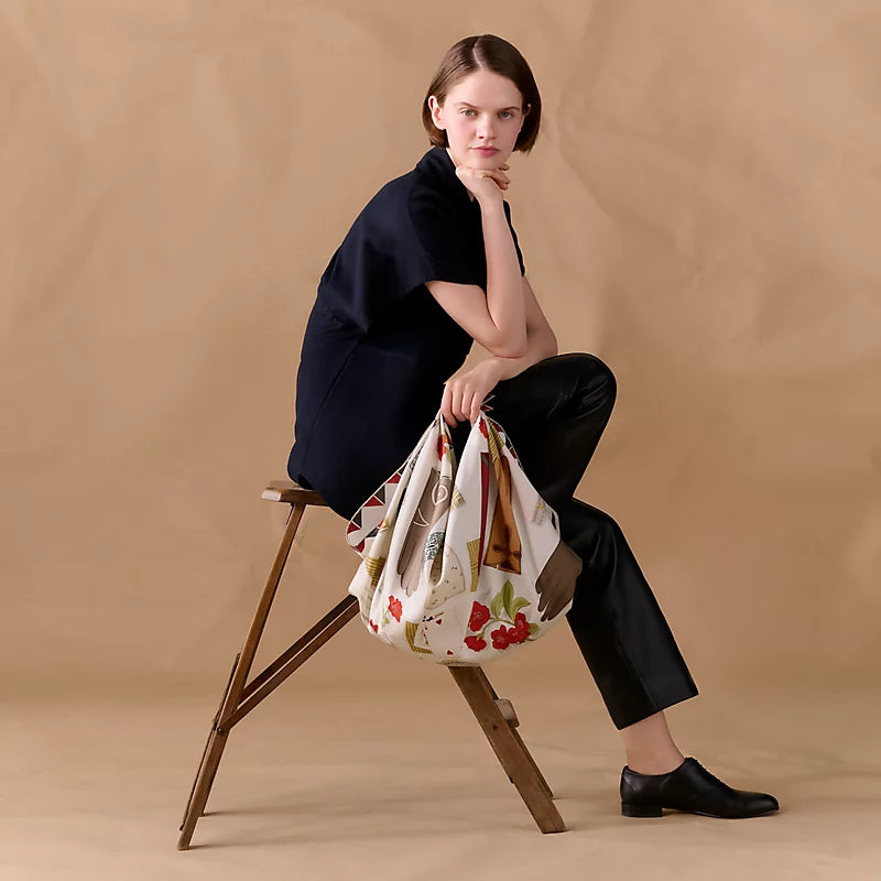 HM 26s Horse Scarf 90 White Brown Colorful Cashmere Silk 134433