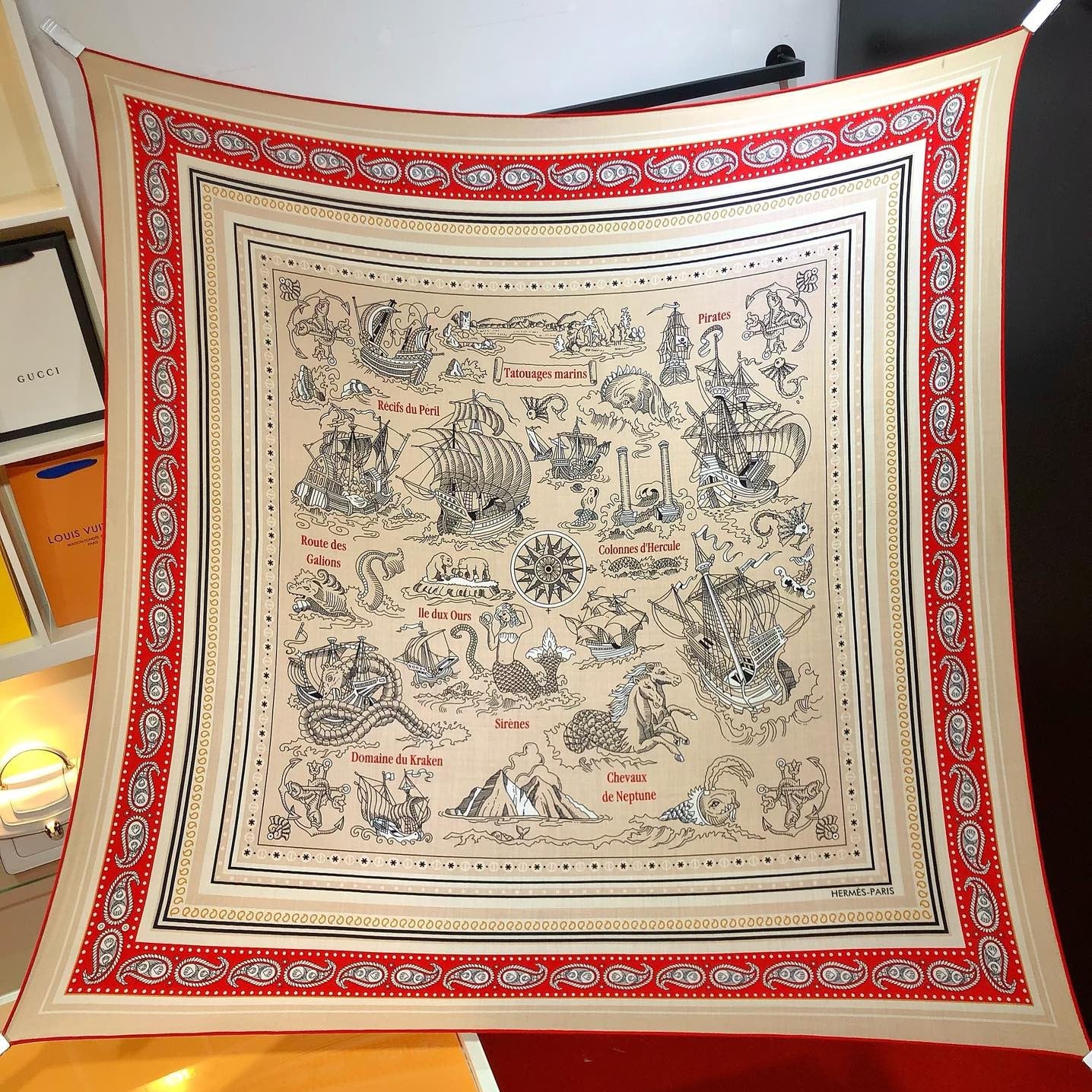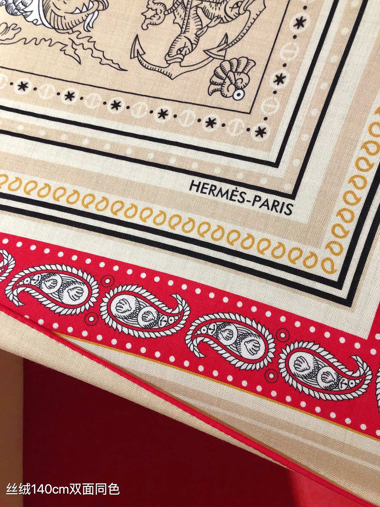 HM 26ss Amazon Scarf 90 Beige Red Colorful Twill Silk 126341