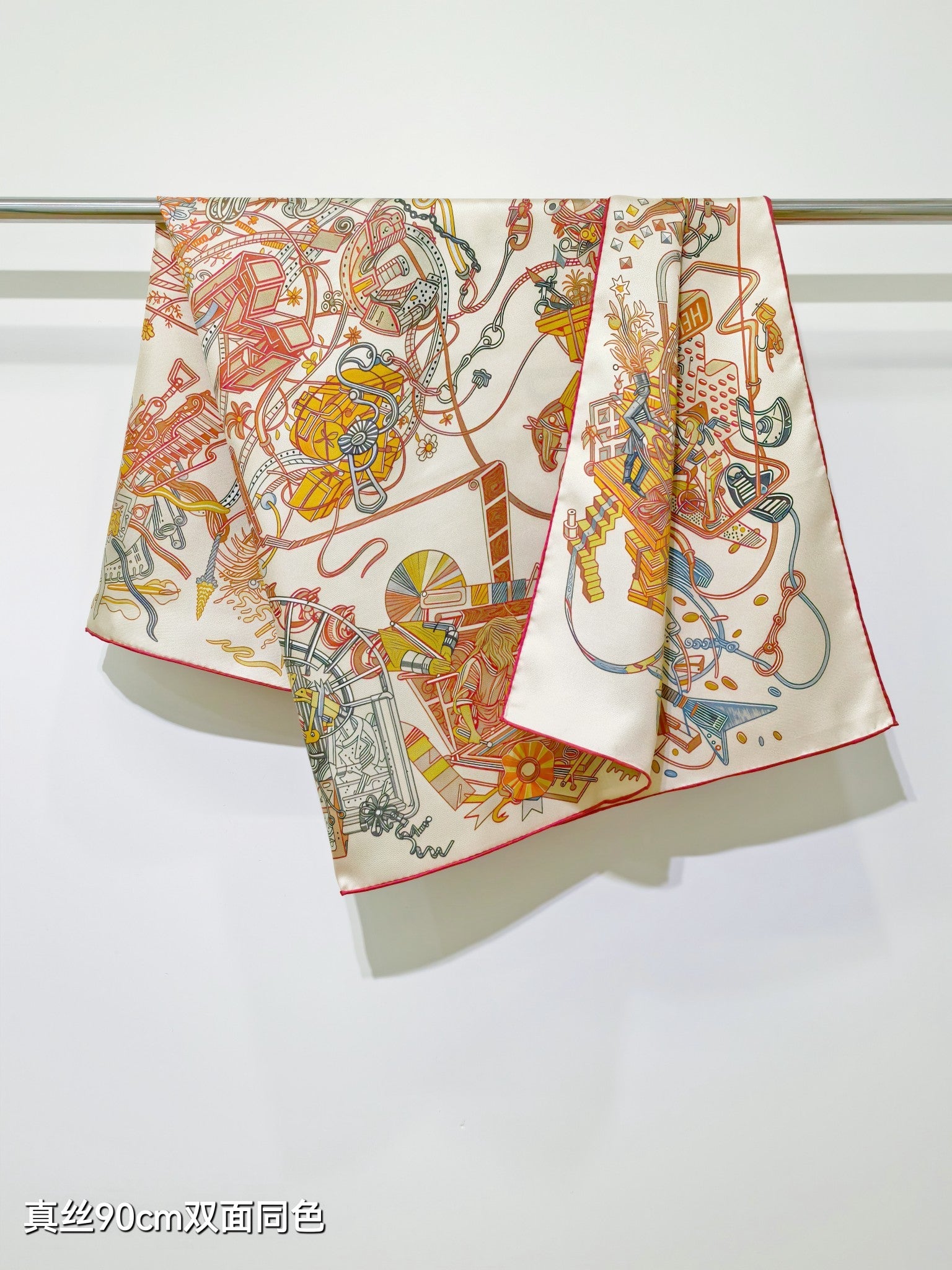 HM 26ss Amazon Scarf 90 Orange White Colorful Twill Silk 126317