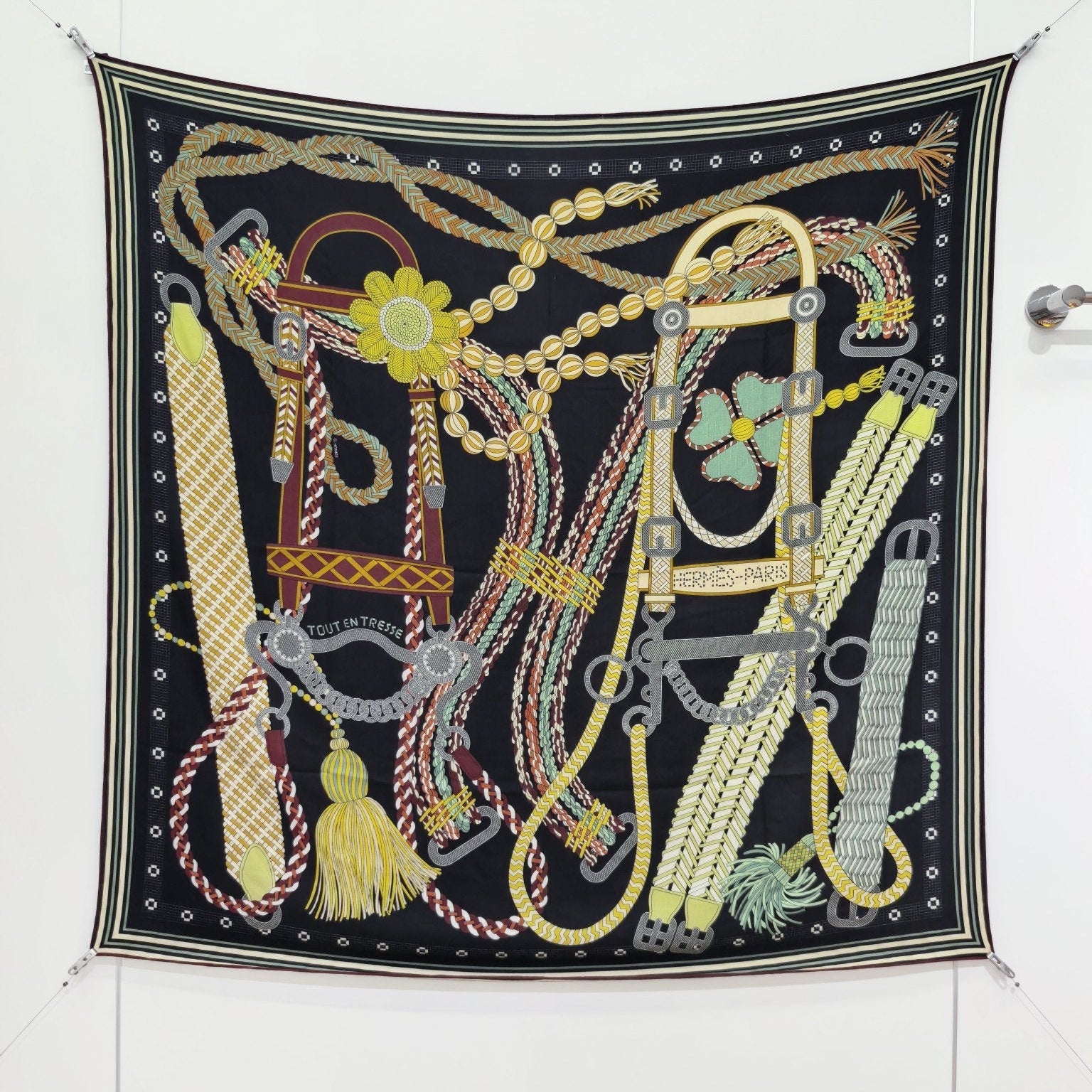 HM 26ss Double Sided Scarf 140 Black Beige Colorful Cashmere Silk 132451