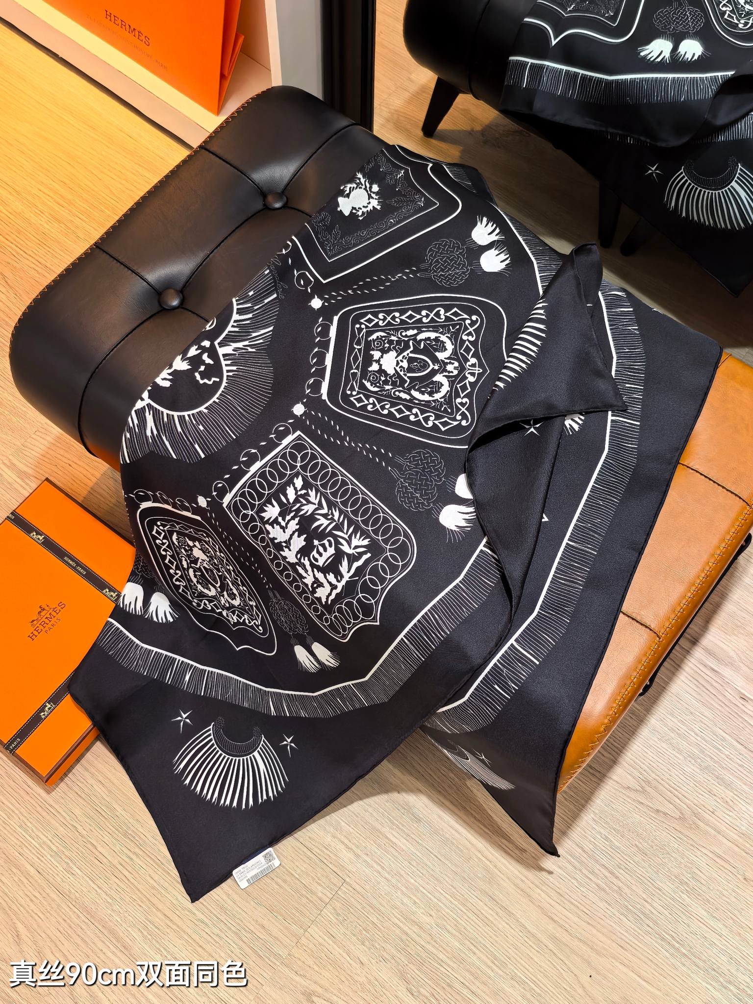 HM 26ss Double Sided Scarf 90 Black Twill Silk 134422