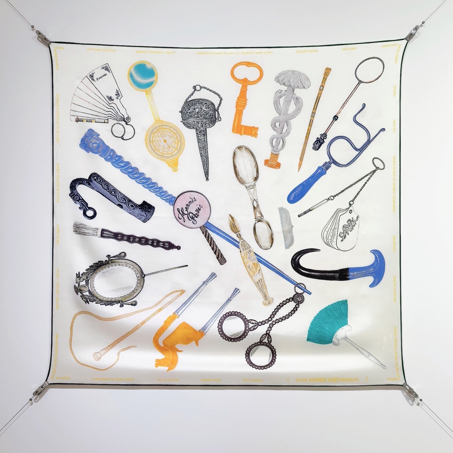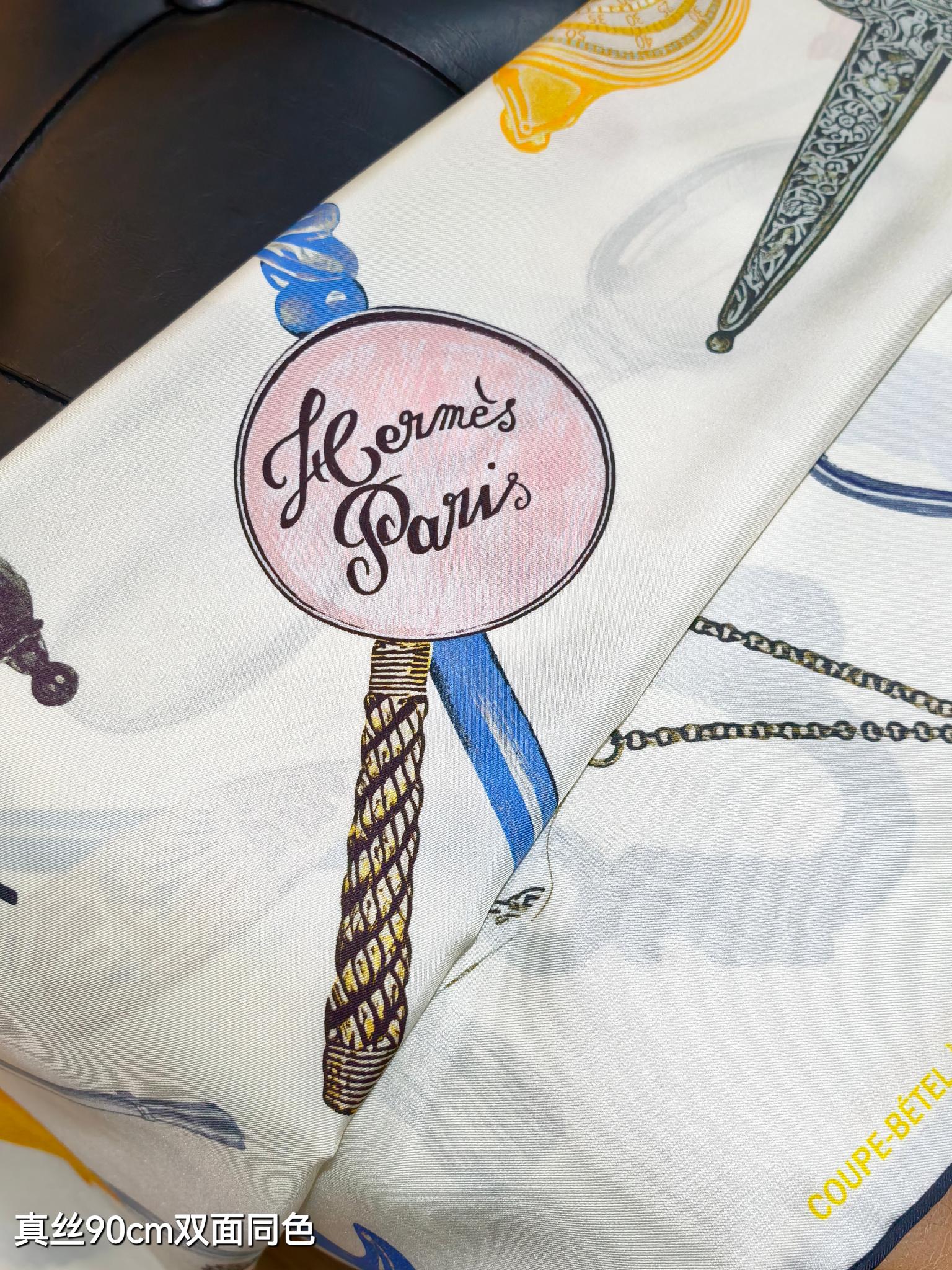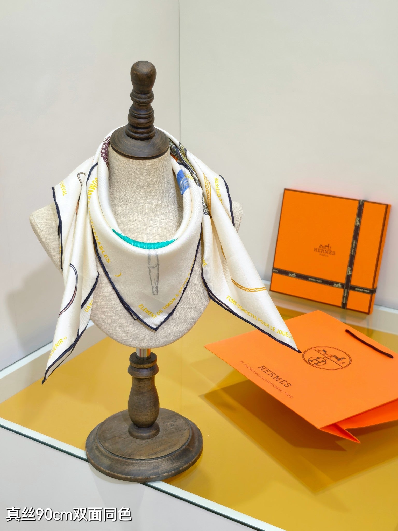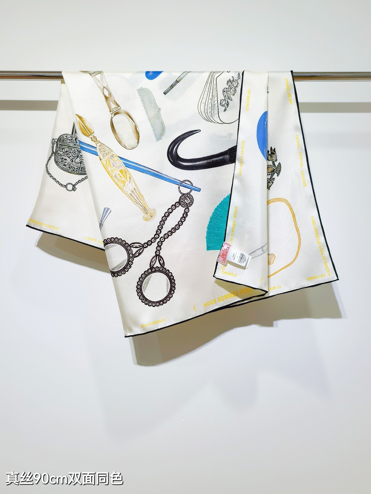 HM 26ss Double Sided Scarf 90 White Colorful Twill Silk 134427